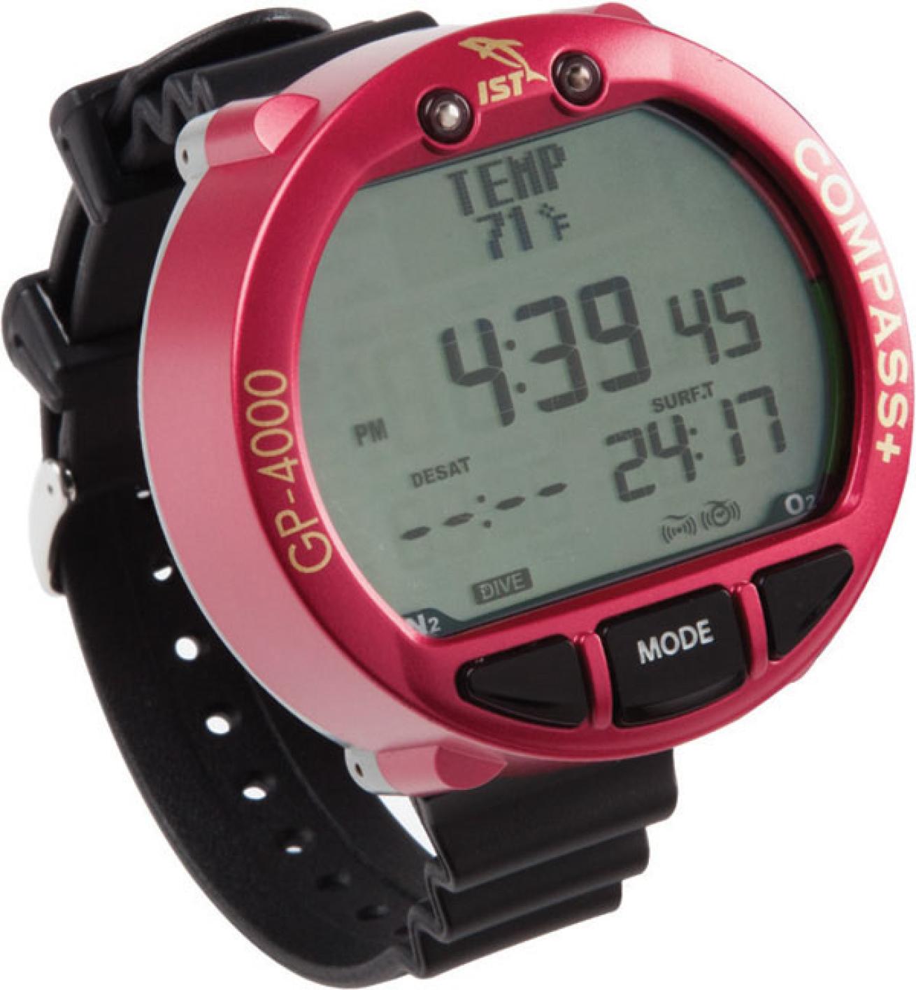 The GP-4000 Compass+ is a moderately priced module-based system rich in features. Testers liked the digital compass, ability to switch between three gases during the dive, freshwater setting and graphical dive-profile depiction at the top of the main data display. While some testers felt the dive information lacked separation — items seemed to run together when glancing at the screen — most of our testers liked the main dive-screen layout, the availability of critical information at a glance, and the ease of accessing the compass and alternate data screens.