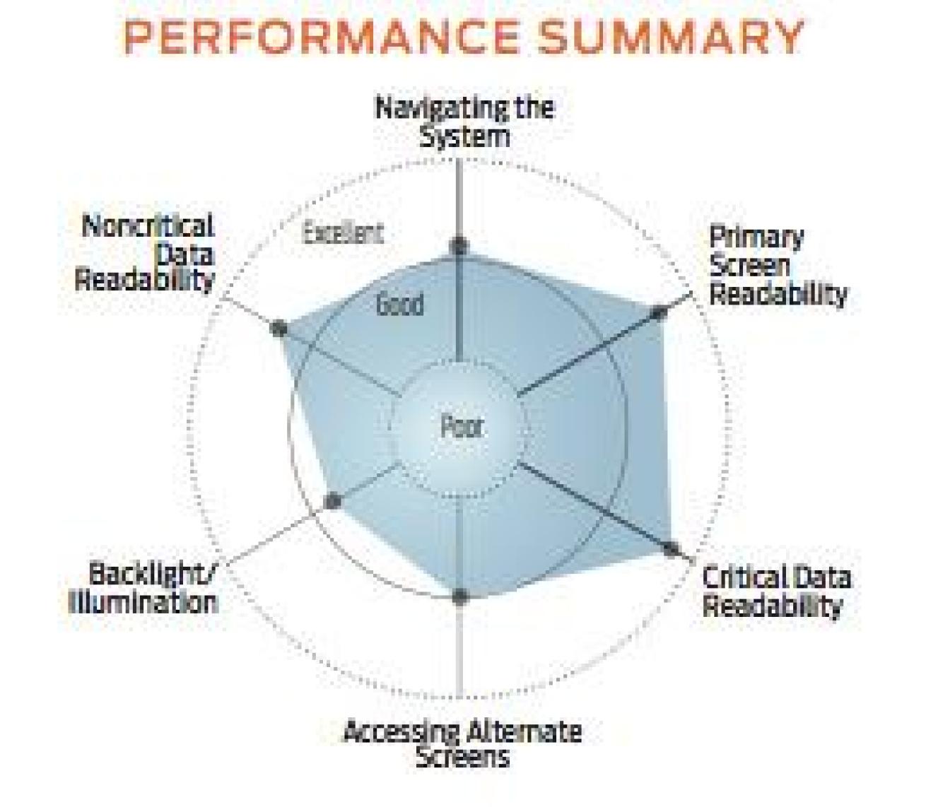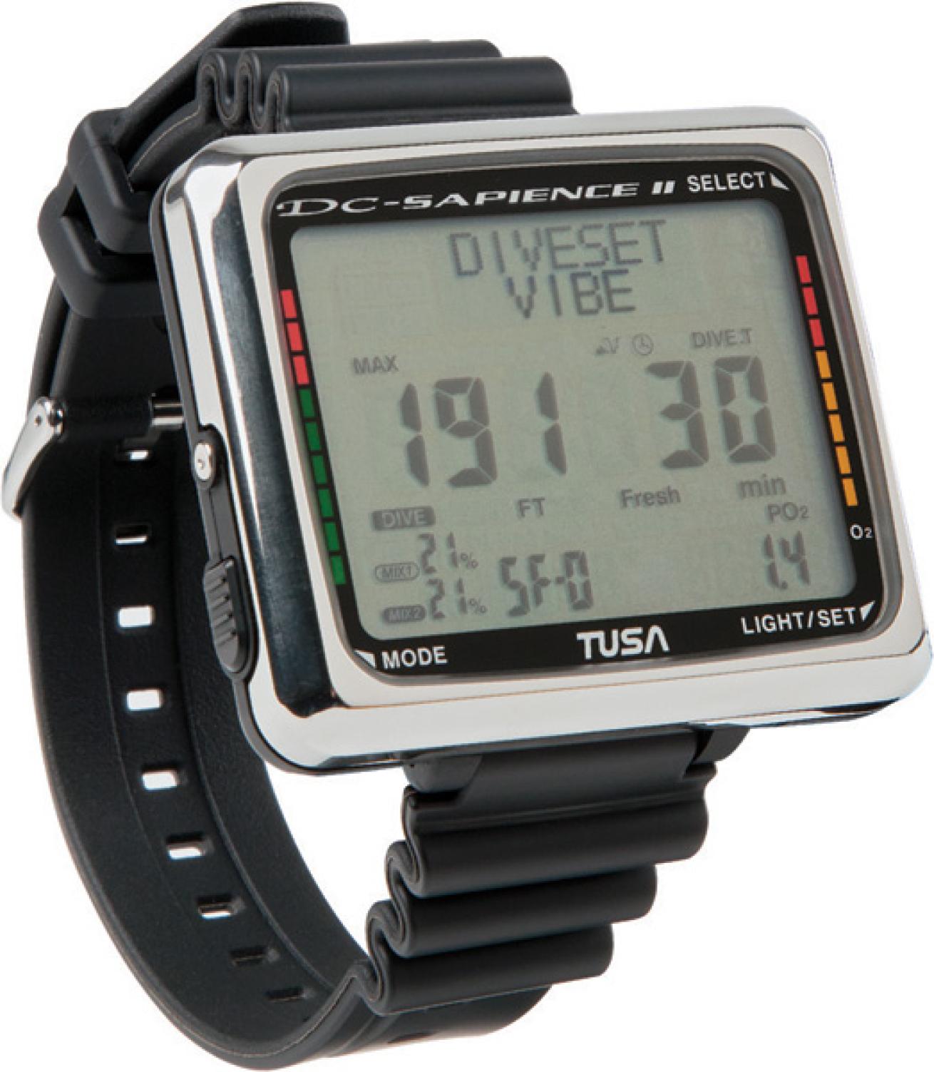 The IQ-850 builds on Tusa’s already loaded IQ-800 by adding a dot-matrix tissue compartment/message display window at the top edge of the main display. The dot-matrix display shows nitrogen-saturation levels with a detailed graph indicating gas loading and offloading, and displays messages, such as a safety-stop countdown. The system also includes a unique vibrating-alarm system to supplement visual and audible cues, a feature testers really liked. While ease of setting system parameters was not as intuitive as the testers would have liked, they rated its main data display highly.