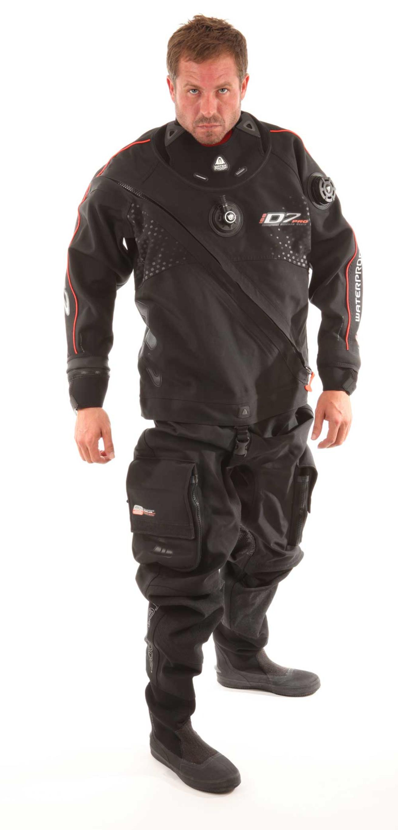 Waterproof’s D7 Pro ISS is a new-generation trilaminate drysuit featuring a front-entry design for super easy self-donning, and an innovative sealing system that combines Integrated Silicone Seals at the neck and wrists. The silicone neck and wrist seals can easily be changed in the field or as necessary, thanks to Waterproof’s Quick Exchange Ring System. The suit is loaded with convenience features, including an adjustable torso system complete with suspenders, an improved warm neck design with double drain valves, an expandable accessory pocket on each leg, military-grade Kevlar kneepads, and anatomically cut Kevlar boots. The D-7 Pro package includes a seven-mil hood and drybag. Bottom line: Fabric drysuit fans will have a hard time finding a suit with so many standard features as the D-7 Pro.
