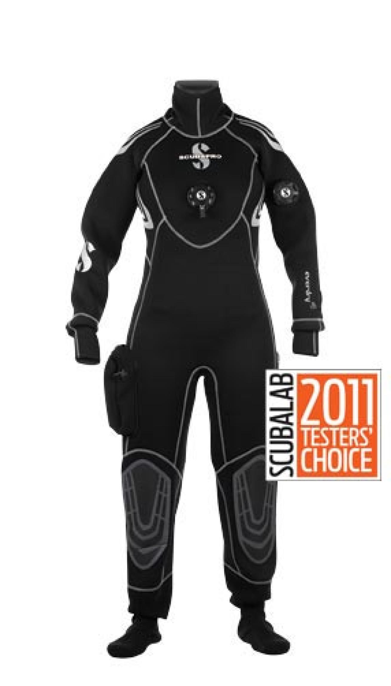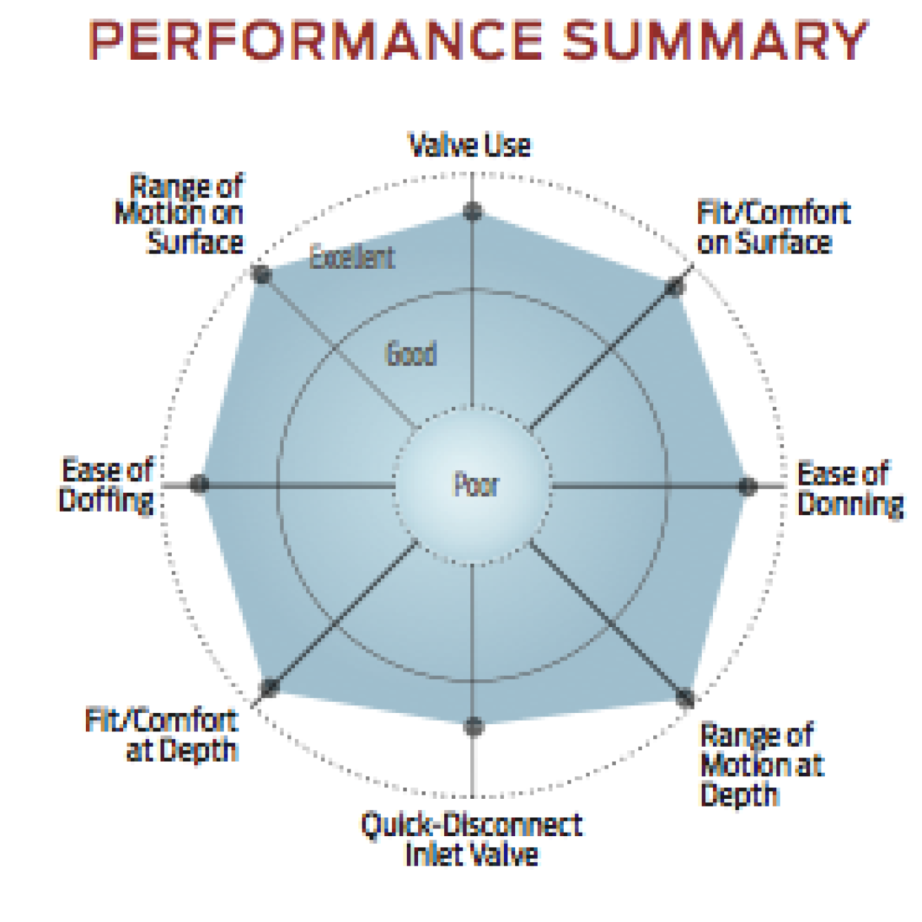 Scubapro’s Everdry 4 is a rear-entry, 4 mm high-density neoprene that weighs 50 percent less and is significantly softer than traditional neoprene drysuits. The immediate reaction from every tester was: “Is this a drysuit?” Before even getting in the water, testers gave the suit very good scores for ease of donning and doffing, as well as fit and comfort. In the water, testers liked that the suit required less weight but still maintained warmth, and they found it extremely comfortable in all swimming positions. Testers initially found the Si-Tech side-activated-inflation-valve trigger awkward to use (as they did with other suits that featured this trigger), but once they got used to it, the trigger provided smooth inflation. Unlike suits that offer unisex sizing for men and women, the female version of the Everdry 4 is cut for a woman’s figure. Purchasing boots is a must with the Everdry, as it comes only with neoprene socks.