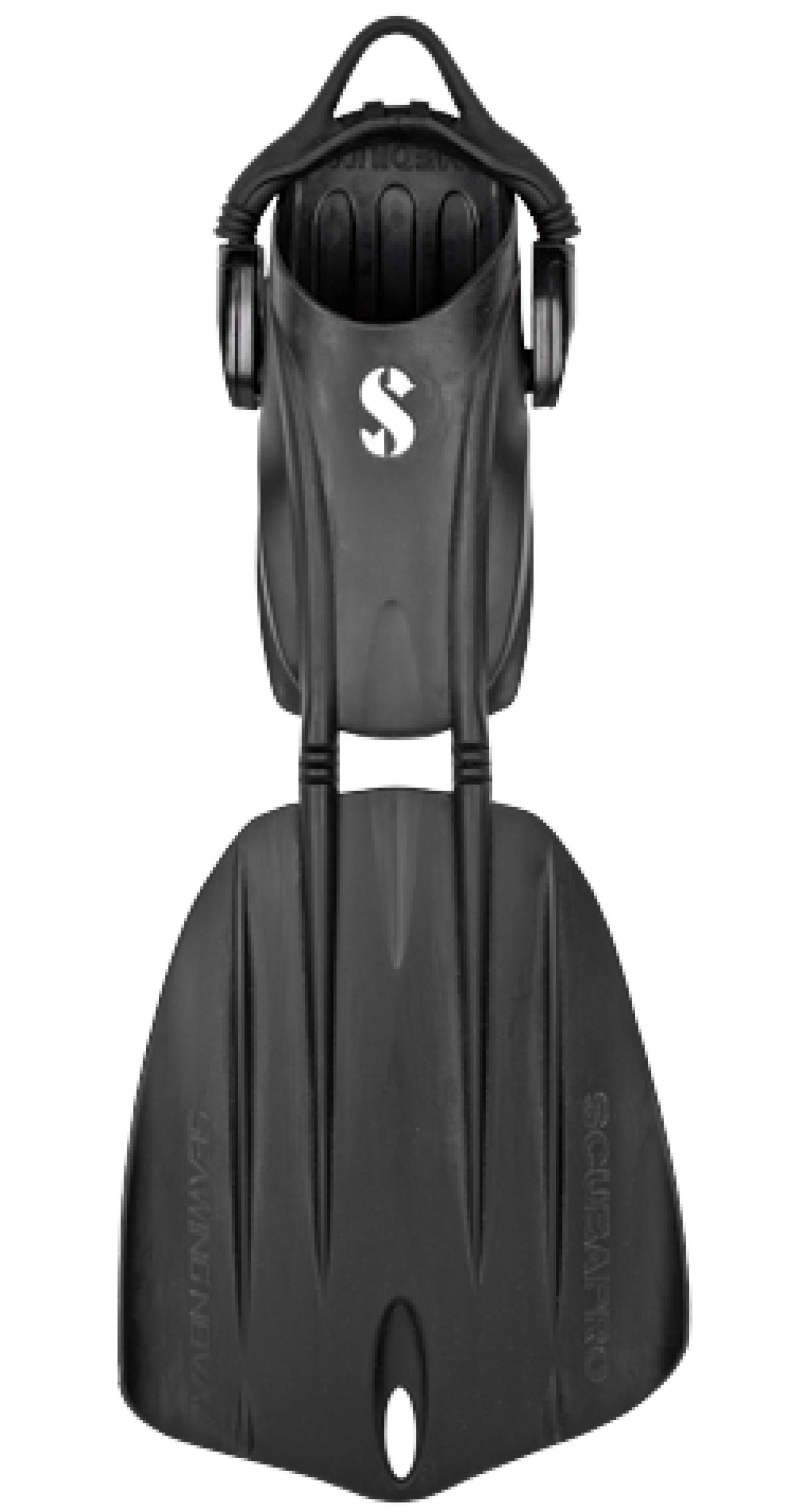 Scubapro’s newest kicker is made of durable Monoprene and features a wing-shaped blade that connects to the foot pocket via a pair of stabilizing ribs, which let the blade pivot allowing it to generate thrust. Molded mini-stringers add some stiffness to the blade and support the stabilizing ribs, which are notched to increase flex and enhance the blade’s angle of attack. The blade has up-curved edges that contribute to the fin’s stable feel in the water. The foot pocket has an extended heel plate that Scubapro says maximizes power transmission and minimizes leg strain. A heavy-duty marine-grade bungee strap with over-molded heel pad/finger loop provides a lot of comfort and makes pulling this fin on and off a cinch, both on deck and in the water.