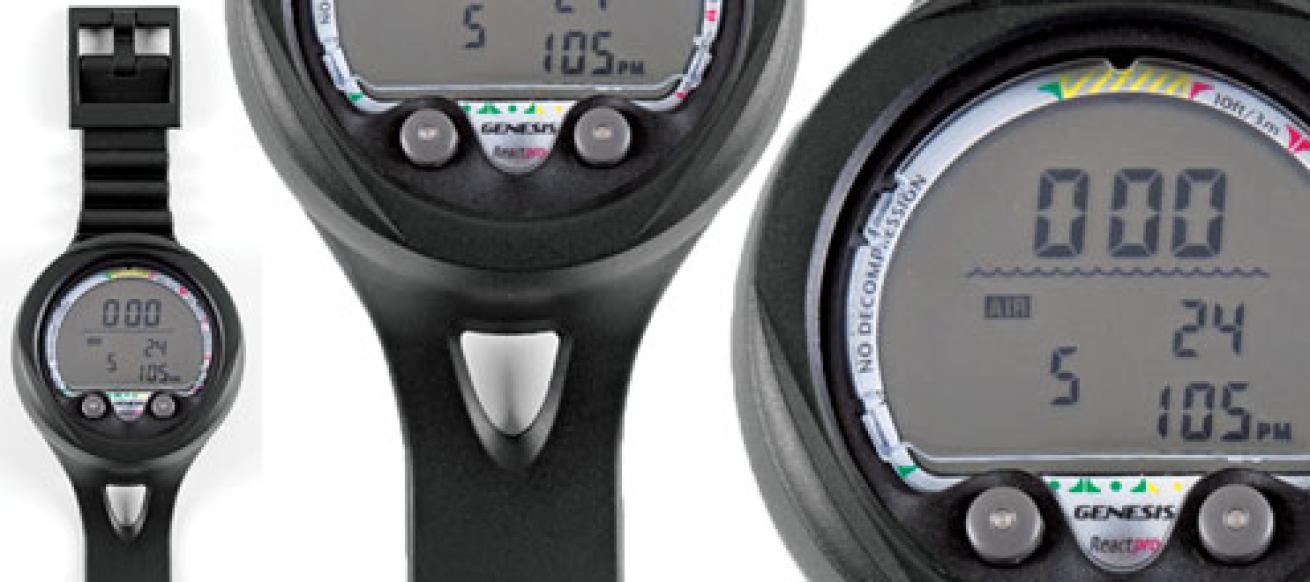 This simple data cruncher has been in the pipeline for years, but Genesis recently gave it a technical facelift. The React Pro now offers a Deep Stop Reminder that conforms to contemporary theories recommending deep stops for dives exceeding 80 feet. Gone is the intuitive green-yellow-red color bar scheme that was so effective on earlier models; color ticks are still used on a nice 270-degree N2 loading bar, but they’re miniscule and hard to see. Luckily, other data is presented in big, bold digits. You get three data screens in dive mode. Dividing the data makes each screen uncluttered and simple to read, but does require constantly switching from screen to screen to access dive data.