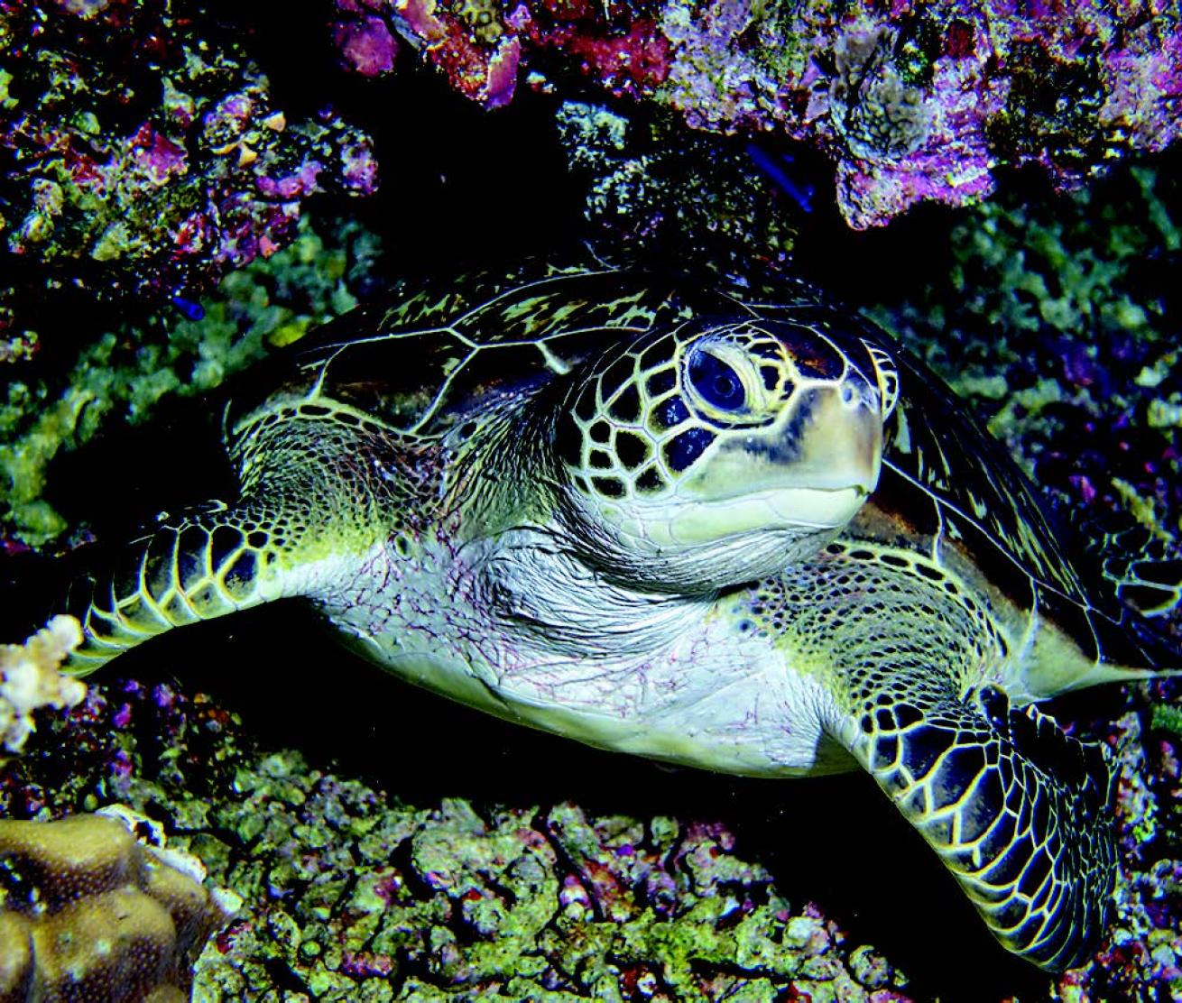 Because a video light is always on, you can’t separate shutter-speed and video-light exposures as you can with a strobe. Strobes fire faster than the camera’s shutter speed, so they aren’t subject to shutter-speed changes. This allows you to expose for the foreground and background independently. To change the background exposure when using a video light, make the light darker for a lighter background and vice versa. The goal of using artificial lighting is overcoming ambient light. You need a brighter light to overcome bright ambient light conditions like those in clear tropical waters near the surface, while a less-powerful light is needed for conditions with lower levels of ambient light, such as deep or murky water.