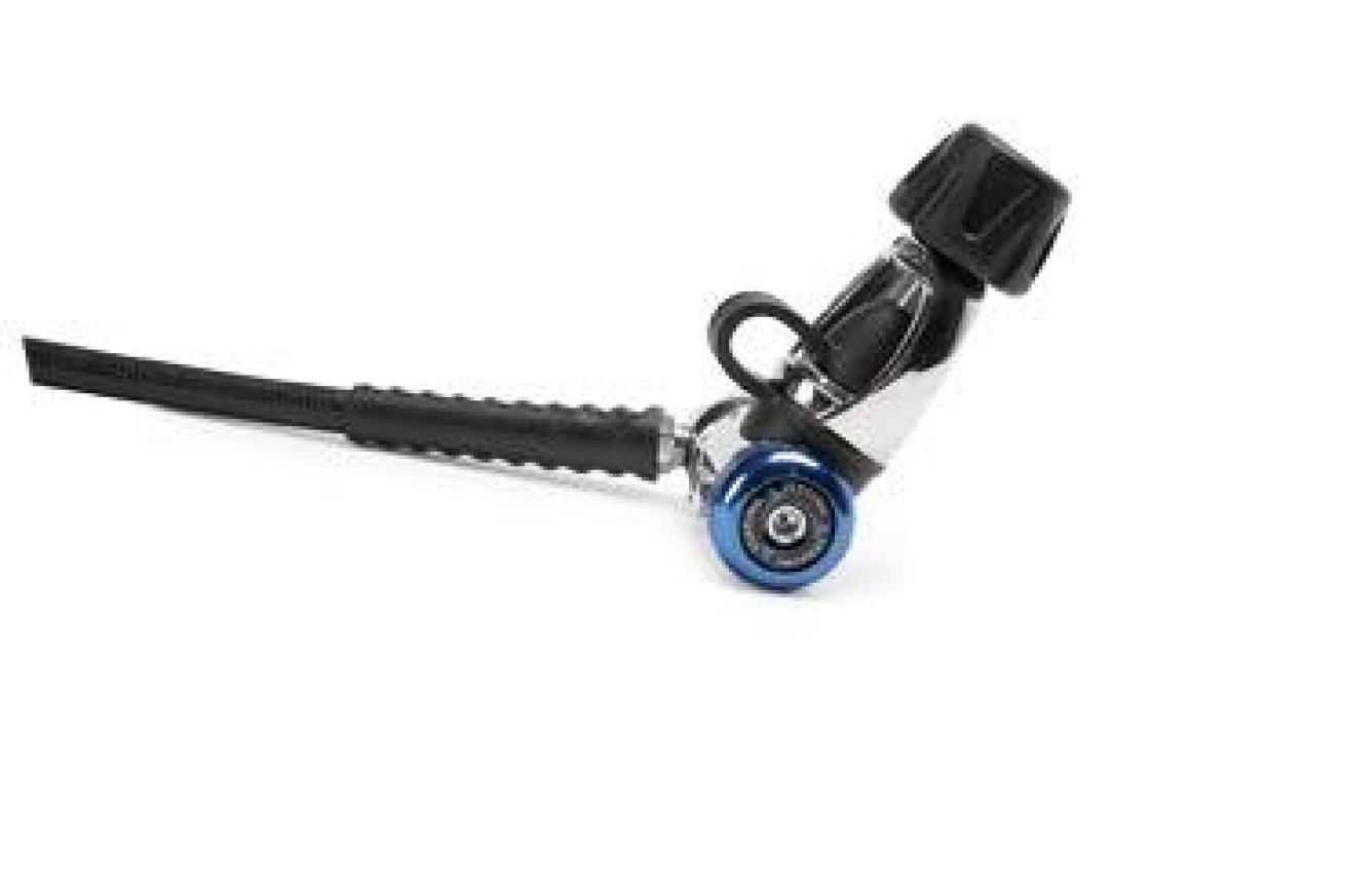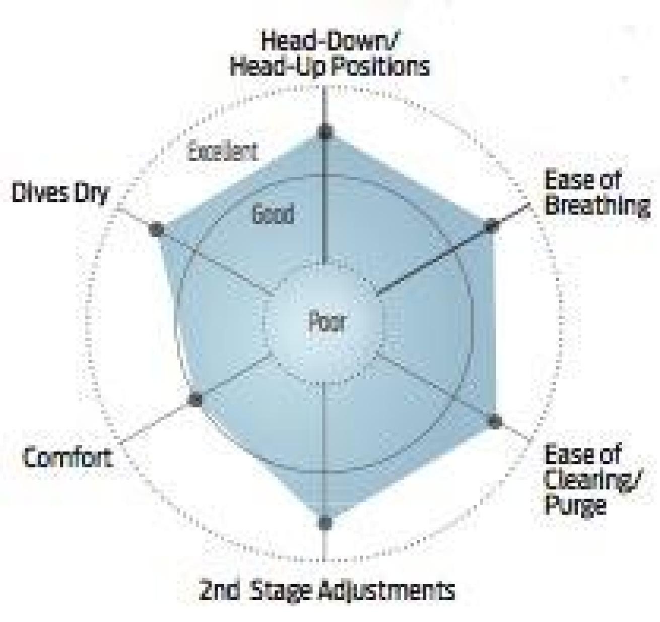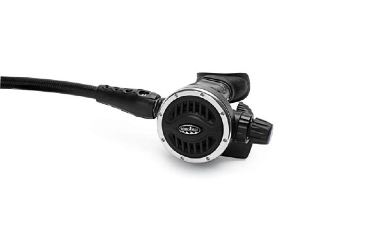 The ScubaMax RG-1003 is a budget regulator with high-end features. The balanced-piston first stage has four low-pressure ports on a swivel assembly similar to more-expensive systems, and the second stage has a wide curved exhaust tee to reduce bubble interference. The ScubaMax didn’t have the best lab results, but breathing effort was consistent through all the test loops, and it outperformed some of the more expensive regulators. In our real-world testing, breathing effort was very good in normal diving conditions, but some of the divers reported damp breathing in head-down and head-up positions. The second stage clears easily with a strong breath, has an easy-to-use purge, and our testers found the venturi lever and cracking pressure knob solid and easy to use.