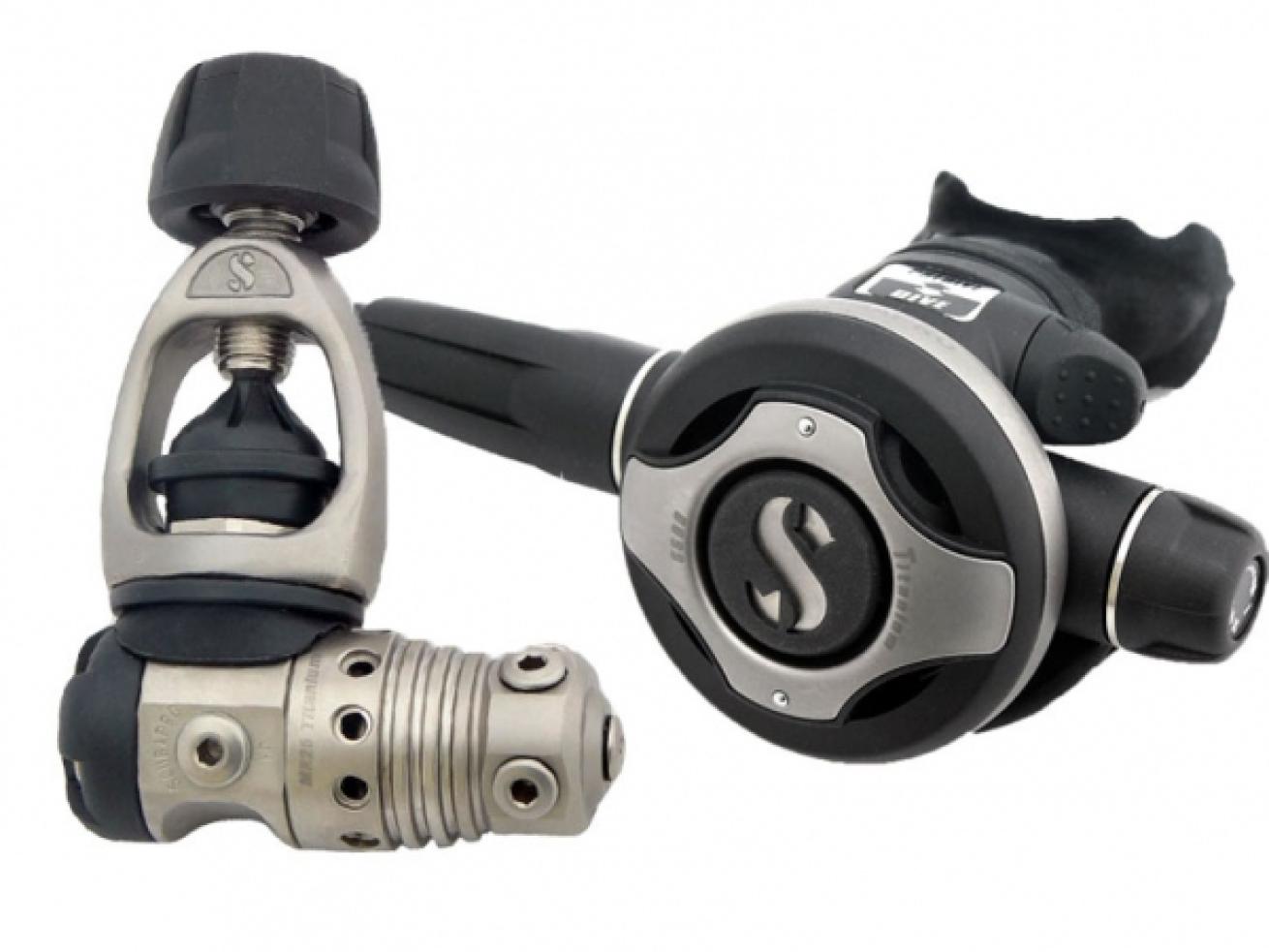 The first stage is machined from a solid block of titanium; the second stage uses titanium on the exterior housing plus a machined titanium interior barrel, for ultra-light high performance. And beyond weight, titanium does not corrode, even in concentrated salt water conditions, for unlimited years of use. And its low-magnetic signature makes it the preference of military divers.