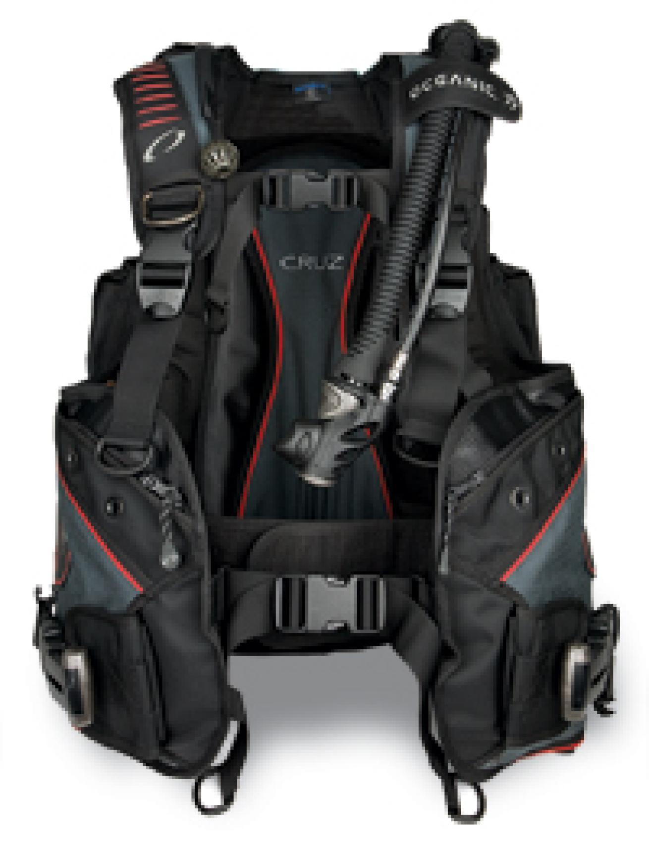 |Specifications| |---| | Average Subjective Test Score| 4.2| | Dry Weight| 8 lbs.| | Buoyant Lift| 38 lbs.| | Inherent Buoyancy| .9 lbs.| | Weight Capacity| 20/10 lbs.| | Price| $480| | www.oceanicworldwide.com|Shoulder straps, waist strap and cummerbund all offer a wide range of adjustment, which makes it ideal when you're jumping from a 7mm semi-dry to a 3mm shorty, although testers thought the sternum strap was positioned a little too high. The BC carries a lot of padding which really raises the comfort meter, yet it still registers less than a pound of inherent buoyancy. The cargo pockets are among of the best in this review in terms of volume and access. The QLR weight pouches are easy to load and lock in with a sturdy handle and buckle. However, unlike the 5 Oceans, the Cruz still uses that Velcro backup patch. It adds a second layer of security but makes it harder to insert the mechanical buckle. Under water the Cruz feels sleek and stable, as it's less hampered by the clutter and bulk you find on other jacket-style BCs. Travel through the water column is controlled with the ergo-friendly power inflator and right shoulder exhaust valve. On the surface the Cruz is predictably stable.