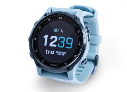 This dive computer is powered by sunlight and doubles as an everyday smartwatch. The computer has an easyto-read monochrome display.