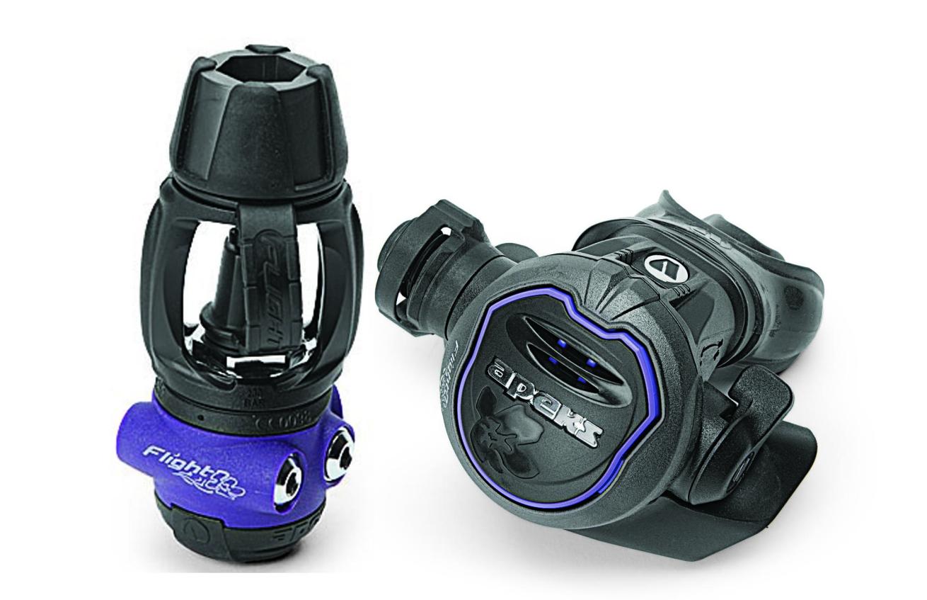 Lightweight and compact, the Flight is an ideal reg for the traveling diver. It comes with its own bag, and this twilight version matches Aqua Lung’s line of gear for women.