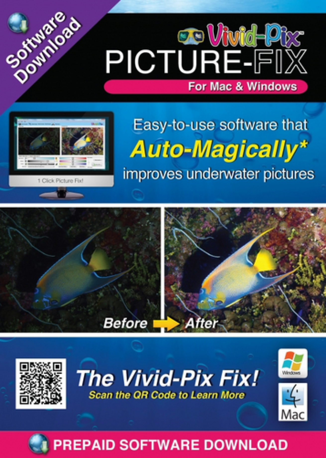 You’re back from a dive holiday with hundreds of underwater photos — a few are decent, most are blah. Unless you’re willing to spend hours in Photoshop fiddling with tools you don’t understand, those photos will never see the light of day. Vivid-Pix easy-to-use software takes away the guesswork (and time), allowing you to easily turn blah and good shots into great ones with a simple click of a button. In Mac or PC, Vivid Pix allows you to shoot first, edit later with better peace of mind. Vivid-pix.com; $49.99
