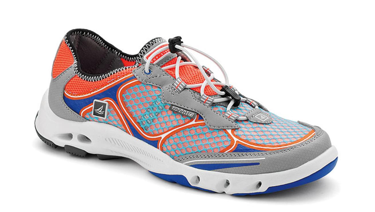 New for 2014 is Sperry’s H2O Escape Bungee, an amphibious shoe featuring channels in the midsole that help water escape more quickly. With a lightweight fabric upper and midsole construction it is the perfect footwear for divers looking to streamline their luggage — lightweight, comfortable, quick to put on/off and fast-drying, you can wear H2O Escapes on the plane (they look great with pants) or on the beach between dives.