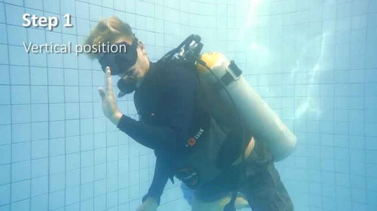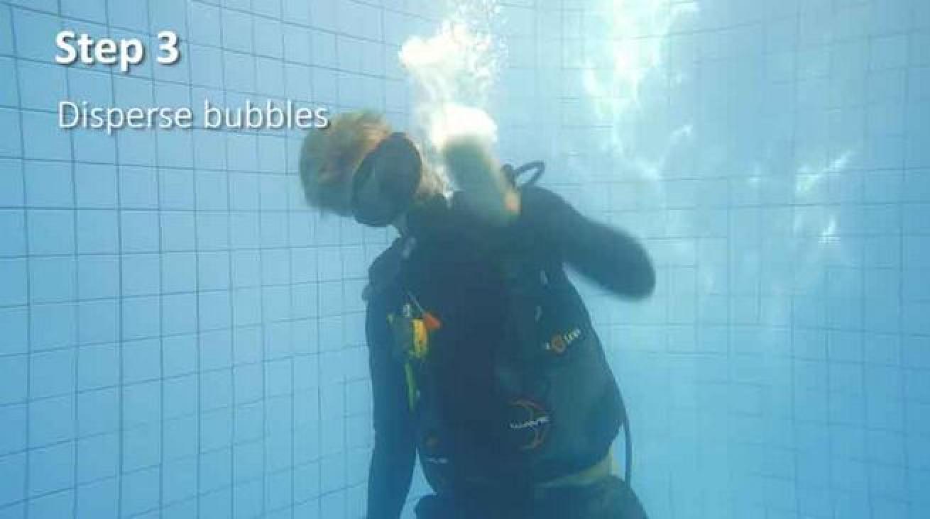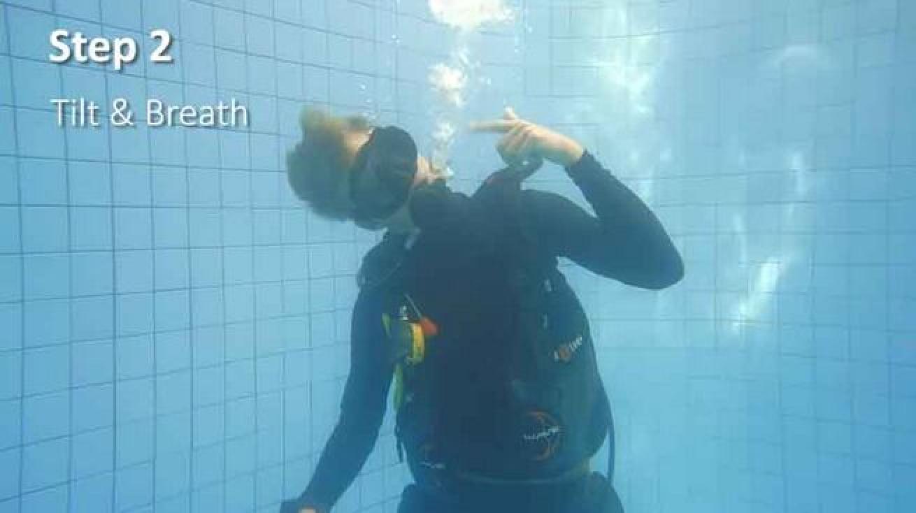 Position yourself so you're facing the surface, as your air bubble will rise toward the surface.