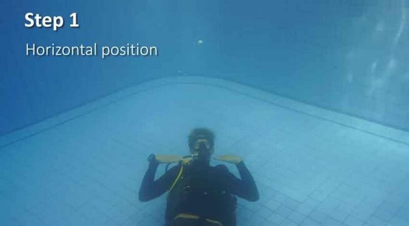 If you're swimming in a horizontal trim, it's important to alter your orientation so you can manipulate your bubble stream.