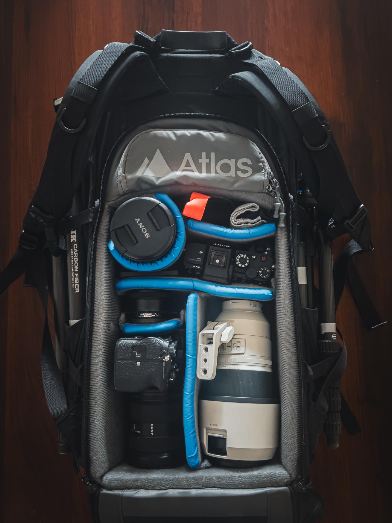 Let’s get this one out of the way first. I used to carry almost everything on, but as your gear list grows this quickly becomes difficult. For the past 5 years, I’ve been using a mix of carry-on and checked luggage. I have an Atlas Packs Athlete backpack that I absolutely love for carry-on. I like to always have my camera bodies, primary lenses and laptop with me at all times for a little peace of mind.