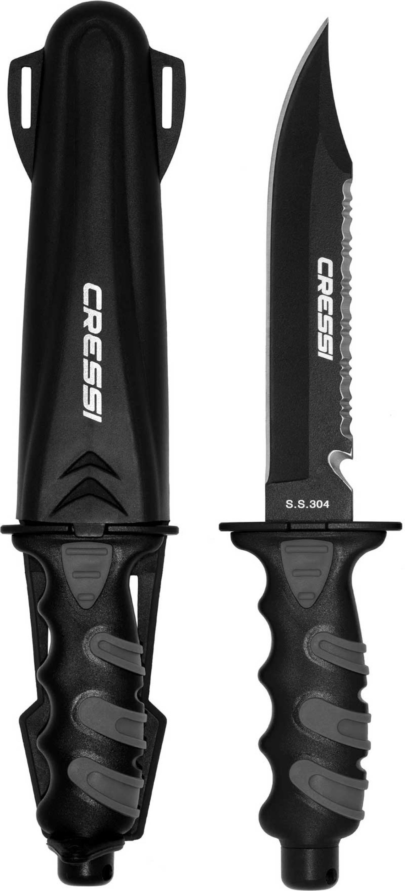 CressiCressi’s Giant Dive Knife is made from tempered AISI 420 steel with a black coating. The 400 alloy holds its edge better than the 300 one.