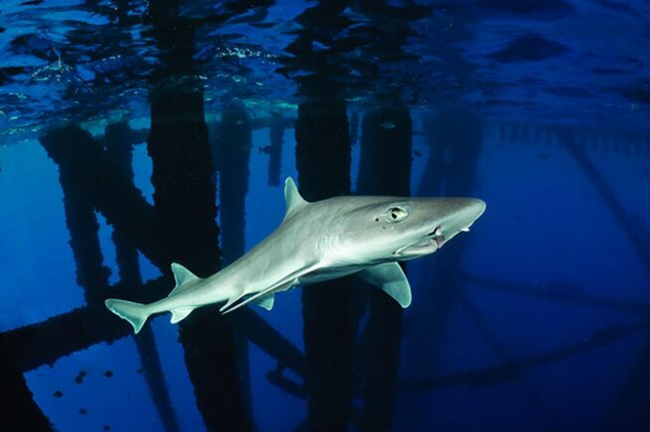 Dusky smooth-hound sharks, commonly called smooth dogfish, are native to the entire Eastern Seaboard of the United States. The name of the genus comes from the Latin word mustela, meaning weasel. Divers report that smooth-hounds are generally shy and are not aggressive, preferring to avoid people. Their flattened teeth are ideal for crushing their diet of crustaceans, mollusks, squid and small fish. Though they can reproduce relatively quickly for a shark, with females becoming reproductively mature at four or five years of age, conservationists are concerned about the lack of a scientific population assessment and science-based fisheries catch limits.