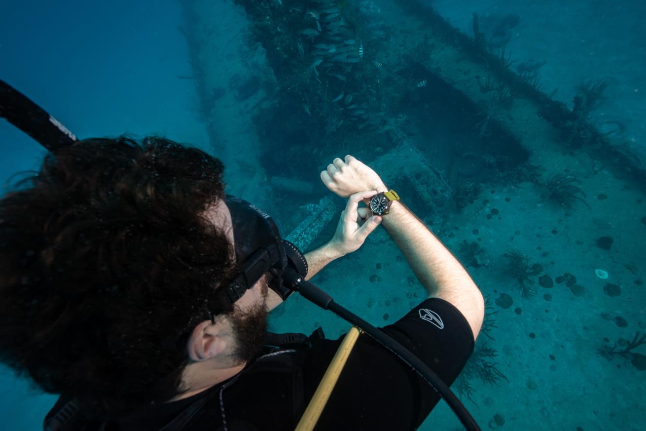 Regardless of conditions, whether I found myself in a darkened studio during a ScubaLab photo shoot or in the shadowy holds of the Robert Edmister wreck while diving in South Florida, I could always read the time thanks to the watch’s brilliant ProGlo luminous markers. These self-powered, tritium-filled cylinders will emit constant, glowing illumination for up to 25 years without the need to charge by external light or a battery. Their strategic placement on the dial and bezel allows for precise timekeeping in absolute darkness while minimizing unnecessary illumination that could compromise a nocturnal operation.