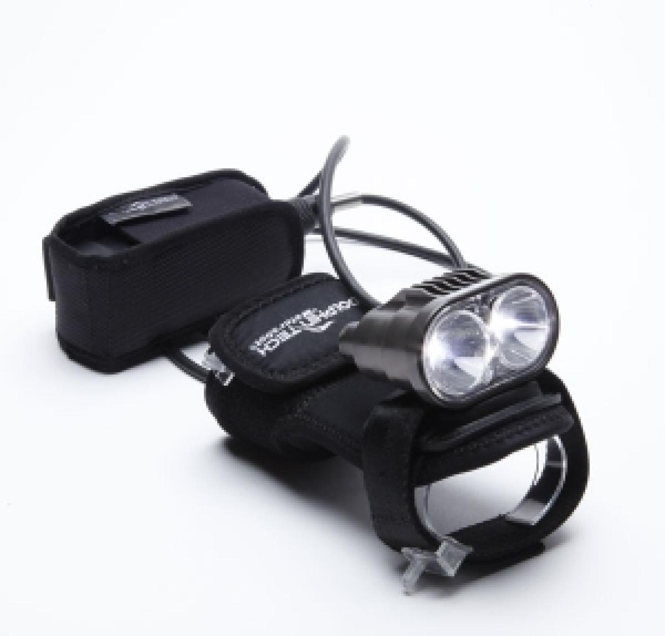 The Dolphin Tech 2000 is a technical-style light with a separate light head and battery pack. The compact light head uses a pair of powerful LEDs and is controlled with a single push-button switch. Its 50-degree beam is ideal for lighting up reefs or probing into wrecks. Divers can select between three power settings for normal use or a strobe function for emergencies. There are two rechargeable lithium-ion battery packs available. The smaller 4-cell battery delivers almost 2 hours of use on high, and 7 and-a-half-hours on low. The 8-cell battery burns twice as long. A hand-mount kit keeps the light head securely in place on the back of the hand, leaving the fingers free for other tasks. The Bottom Line: The Dolphin Tech 2000 Lumen Light Kit gives divers powerful illumination when they need it and long life for multiple dives.
