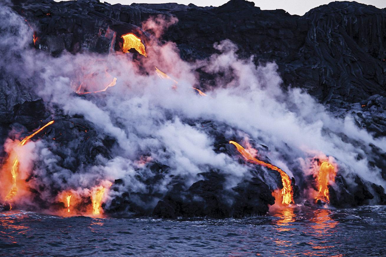 David FleethamLava reaches the ocean at Hawai‘i Volcanoes National Park.