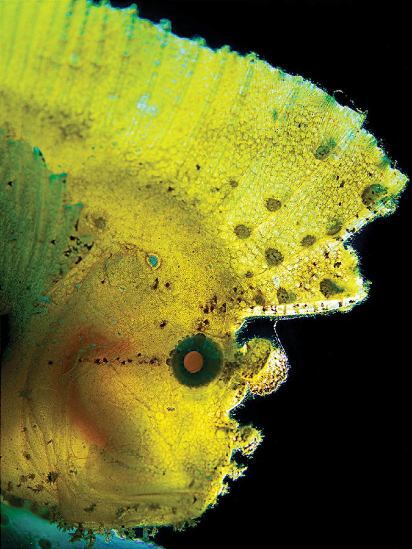 I placed a Sola Video 1200 LED light behind the fish, and used an Olympus E-5 camera in BS Kinetics Lut housing, 50mm macro lens and 1.4x teleconverter. ISO 100, 1/250 sec, f/5.6
