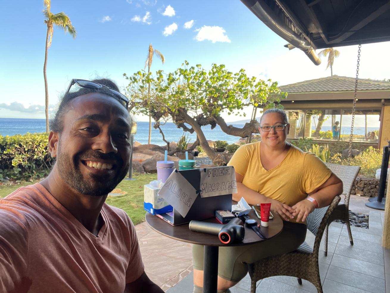 Courtesy Steven PickeringSteven and Jessica PIckering spend time giving out free massages to other residences who are temporarily living at the hotel.