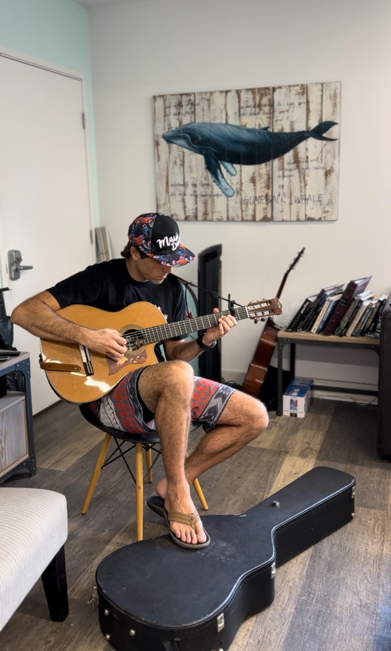 Kristin PaterakisAntonio Harmsen plays the guitar at Maui Diving and Snorkeling Center