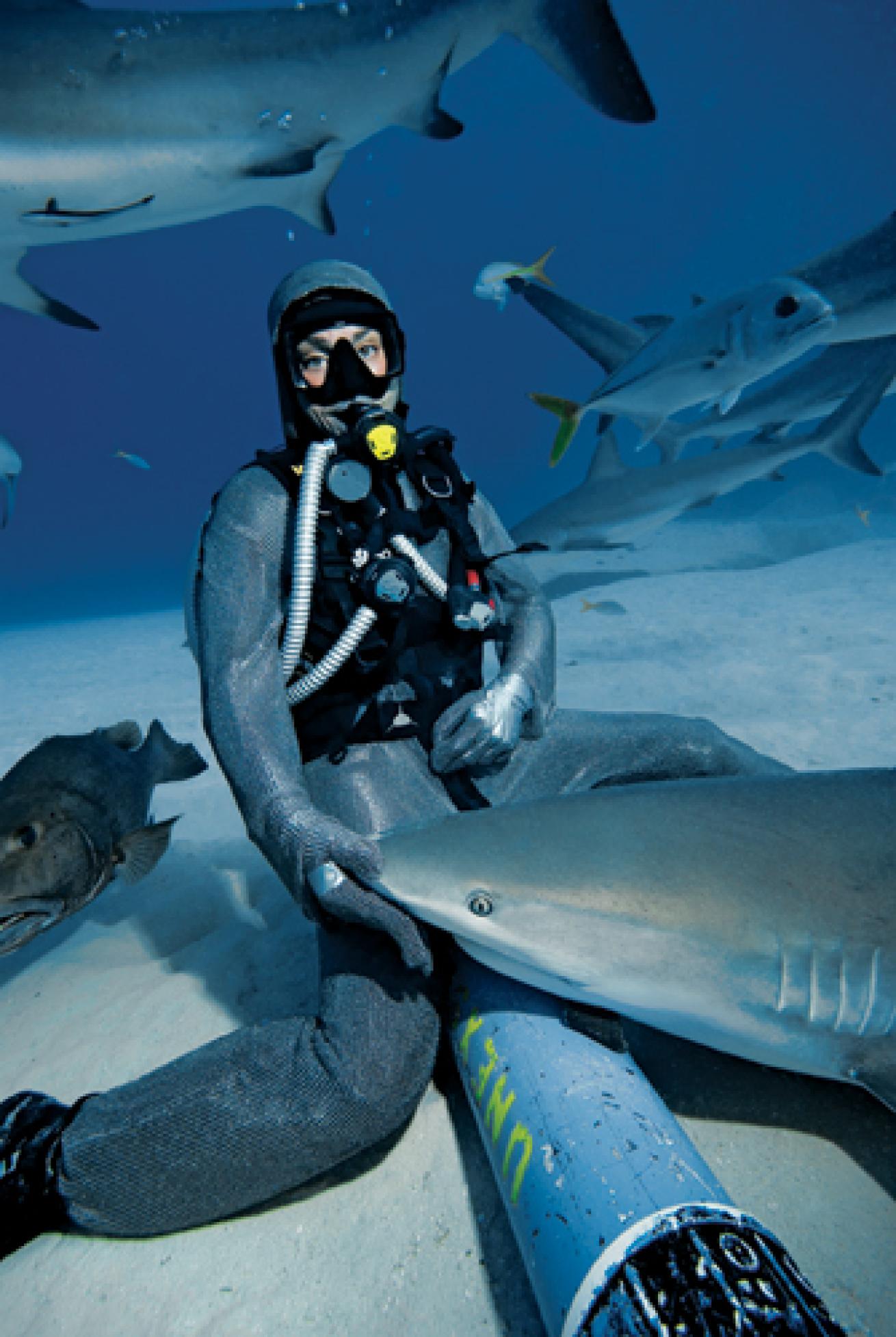 You need the right shark on the right day. I start by sizing up each approach- ing Caribbean reef shark. I offer it a herring while gauging its movements. Is it coming in slowly? Lazily? Does it seem relaxed?