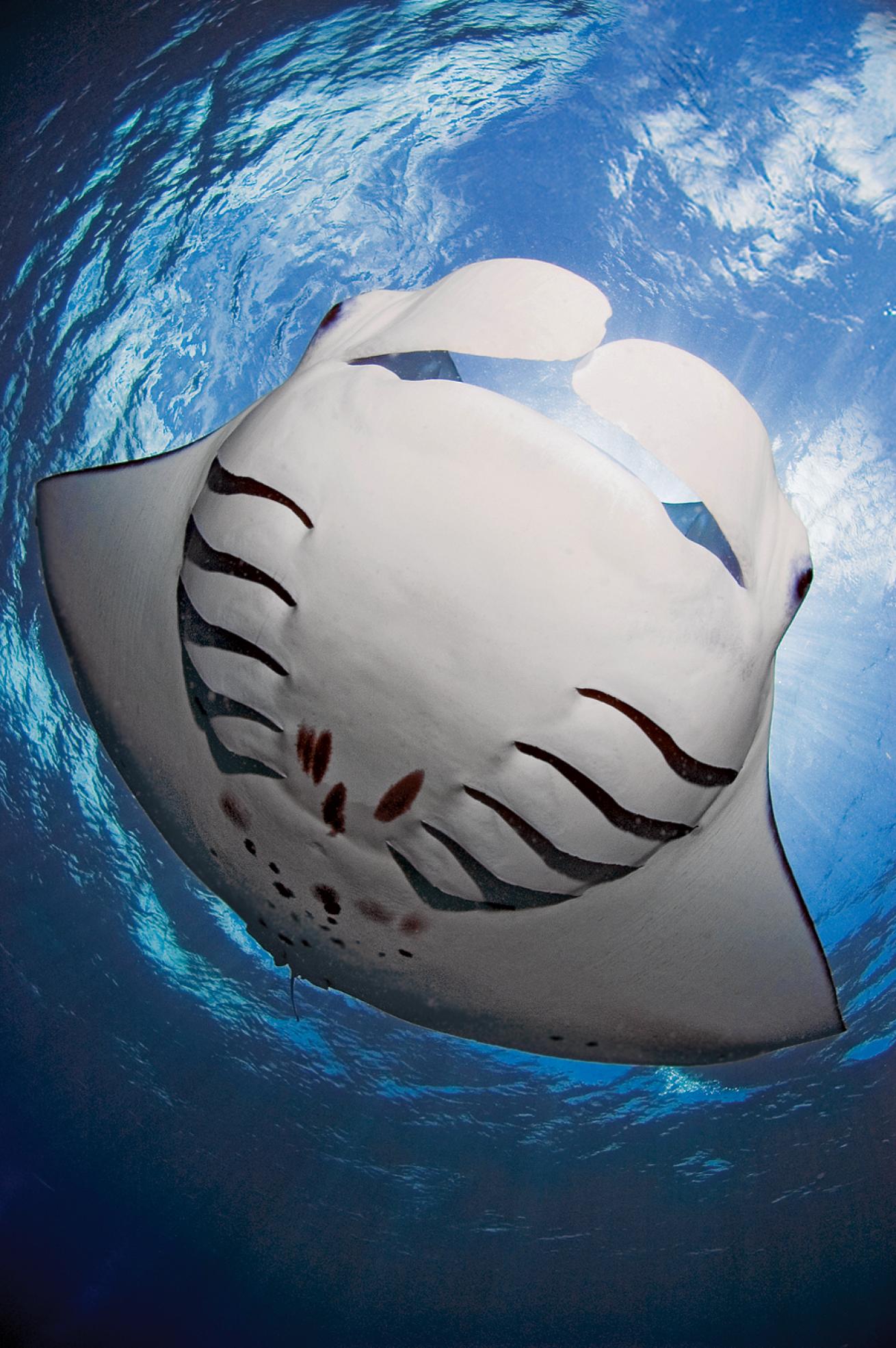 Since the discovery of resident manta rays that make daily visits to the island’s inner channels, diving has become the main attraction here. Of course tourists come to enjoy the unique culture and to see the natural beauty of this sparsely populated isle. But mostly they come to see the mantas of Miil Channel, the sharks of Vertigo Wall or the swim-throughs and beautiful shafts of light in Yap Caverns. They come to marvel at Lionfish Wall’s flowerlike corals, go on a macro hunt to spot mating mandarinfish and to watch the dolphins chase the dive boats. They’re here to truly live the dive life, if only for one coveted week. And the Yapese people are happy to have them. They have always been one with the sea and understand the draw. Even the gables of some traditional meeting houses display manta art, reinforcing the deep-rooted seafaring history of this tiny island community. — Tim Rock