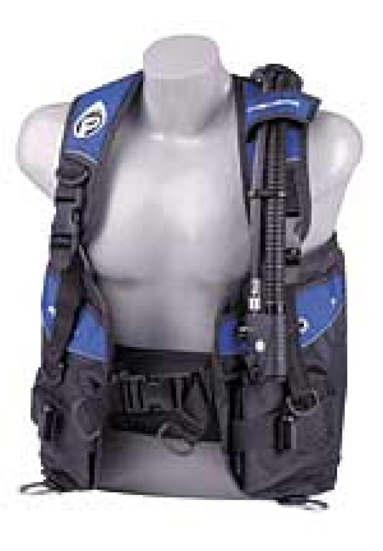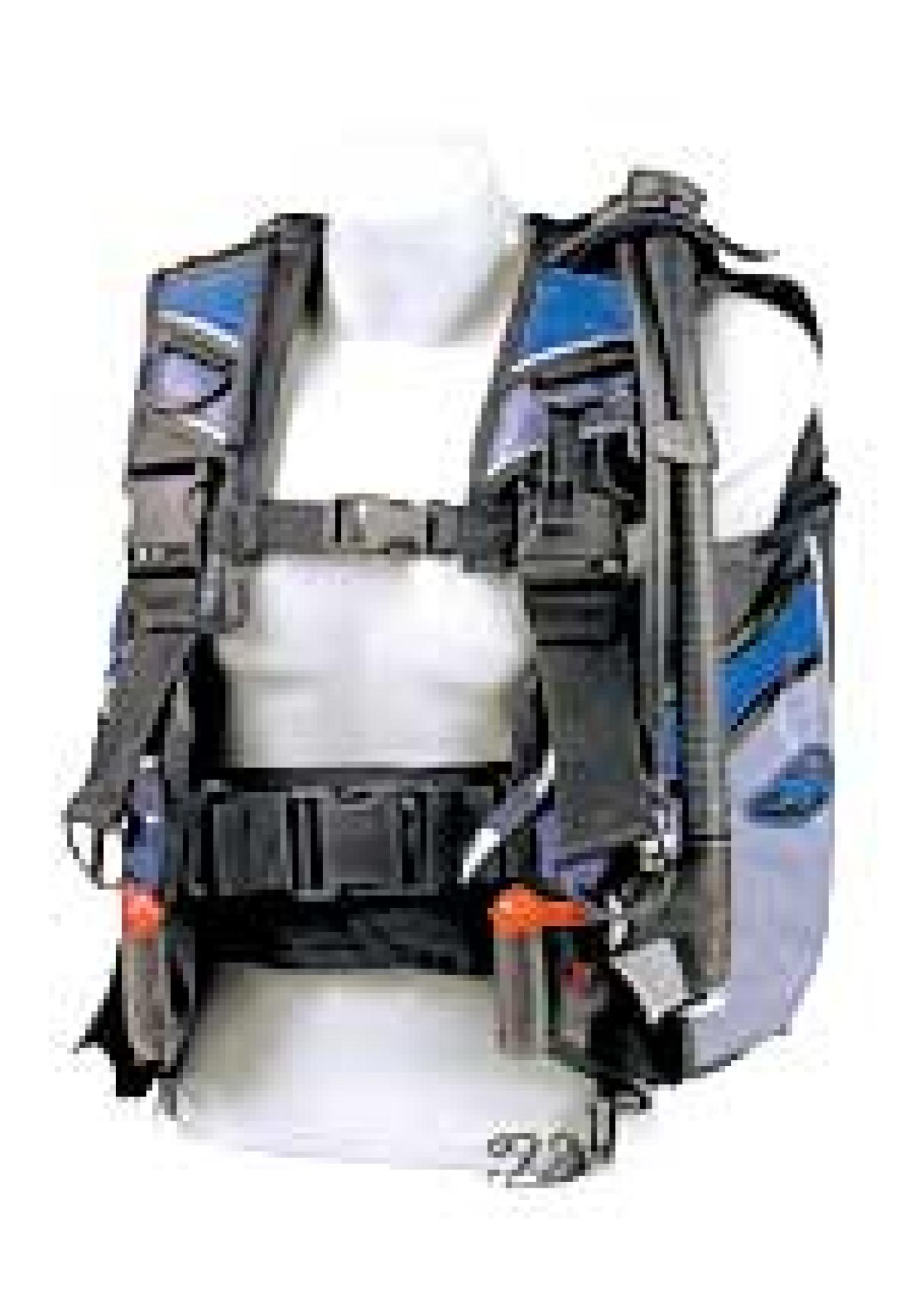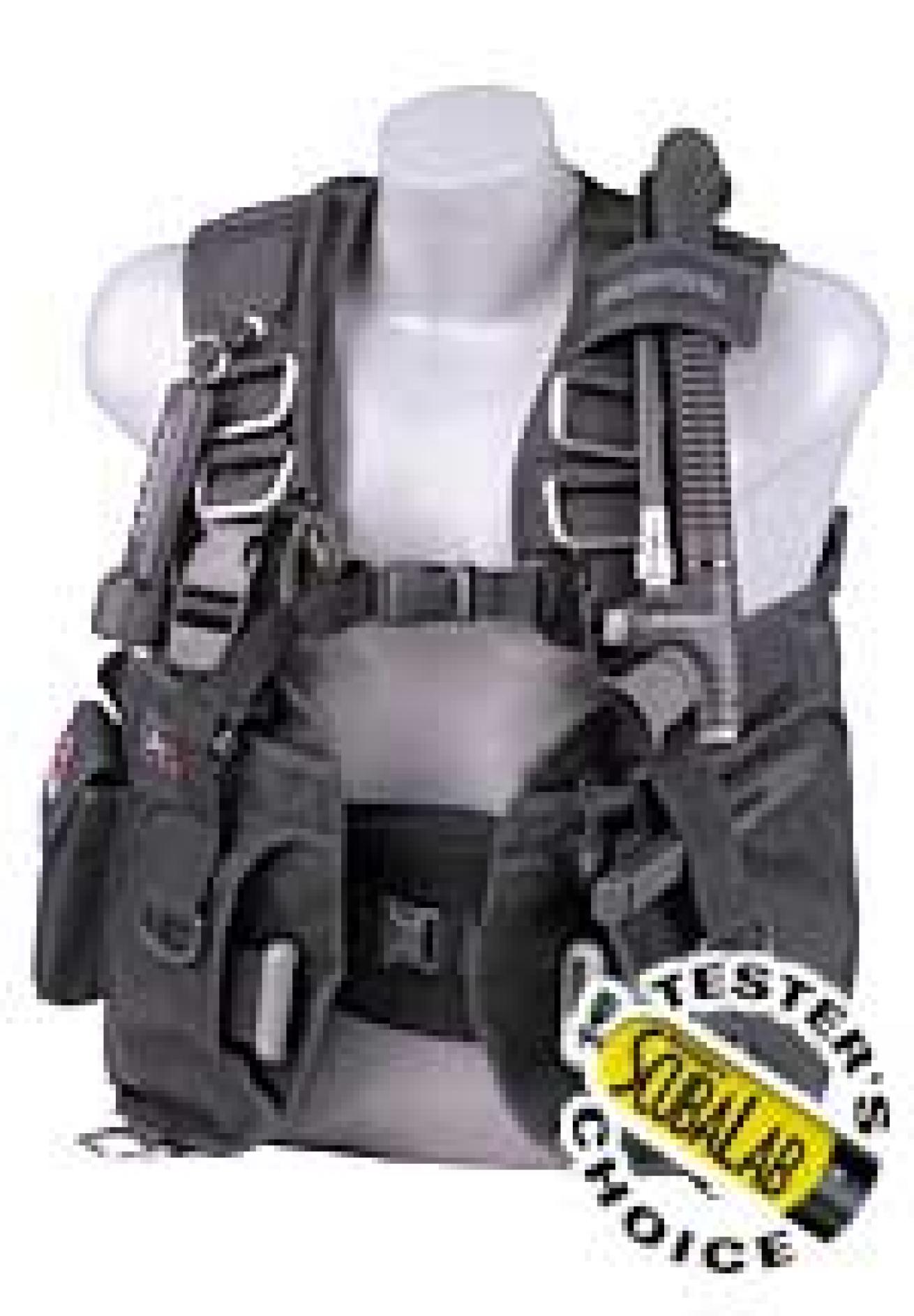 The power inflator fits well in the hand and allows for minute adjustments to fine-tune buoyancy. When it's time to deflate fast, two remote valves along with the pull dump produce efficient flow. Two tank straps provide stability at depth with no apparent tank wobble. Only minimal body squeeze was noted.