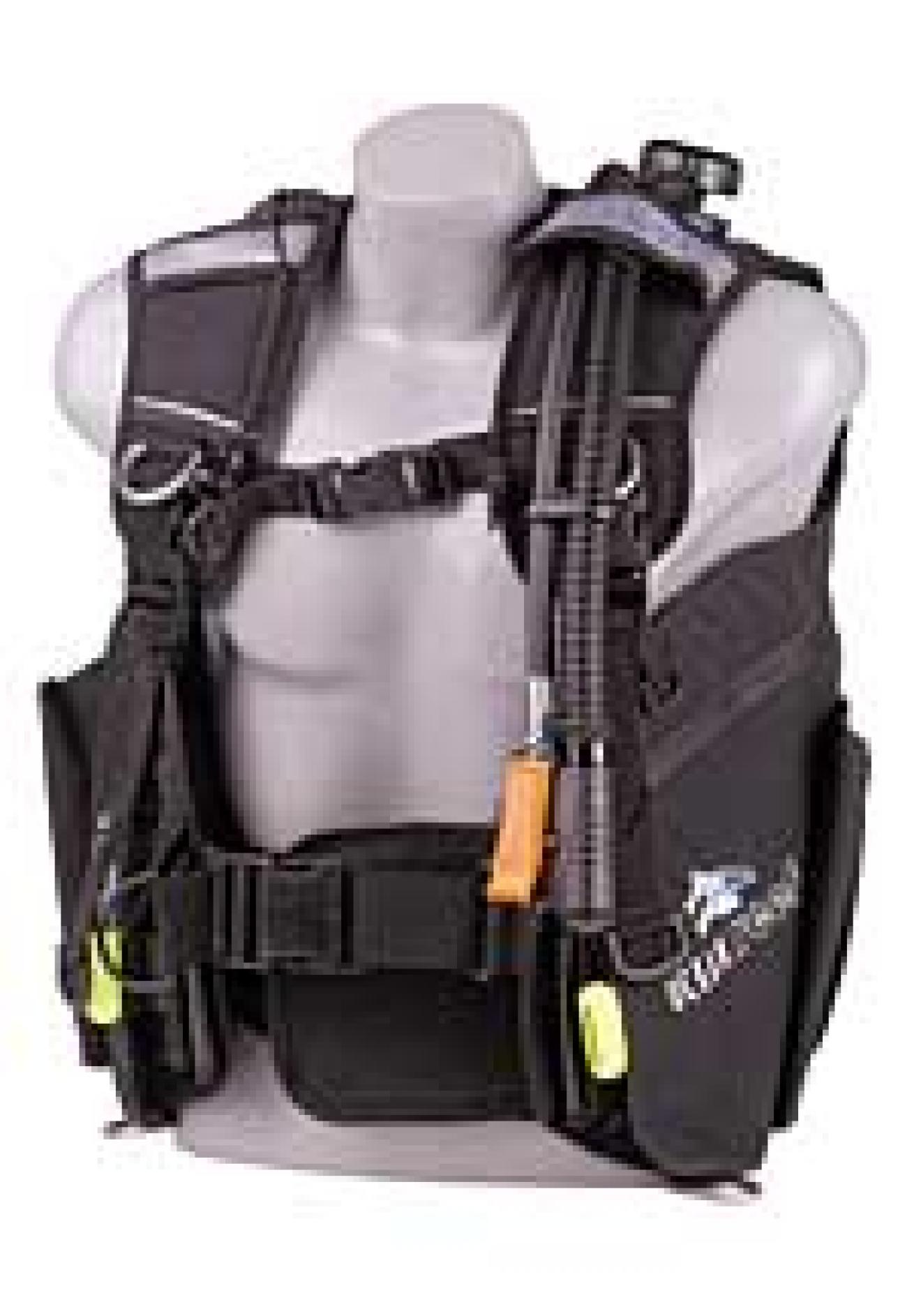The Pro Unlimited shares the same internal gusset, contoured shoulders, padding, multiset waistband and swivel buckle adjustment system as the Pro QD, but throws in a self-adjusting lumbar support system and a vertically adjustable chest strap to allow for dry suit valves. Volume on the two large zippered pockets gets eaten up when weight pouches are loaded, but the cummerbund pocket is larger and easier to access than most.