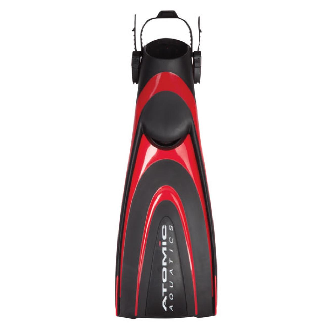 The Atomic Aquatic’s Bladefin combines several technologies to efficiently turn kicking effort into forward motion. The first is the design of the foot pocket, which uses a rigid loop of material across the top of the foot and is joined to an internal rail system that extends down the length of the blades. The second technology is the sole of the foot pocket, which is also joined directly to the rail system. The result is excellent power transmission from each kick. The Bladefin’s materials control flex and direct water behind the diver rather than spilling it out over the sides. Oversized winglets or strakes provide additional kicking stability and reduce drag. The bottom line: The Bladefin’s unique foot pocket and rail system design, along with the blade materials help divers move forward in the most demanding conditions.