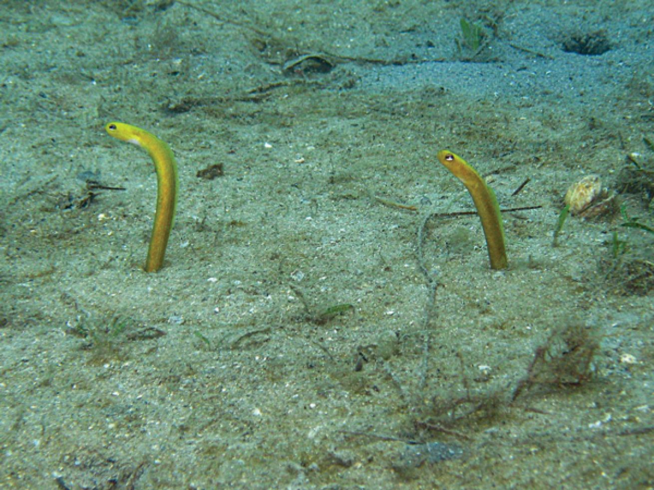 Courtesy Mike Phelan1997 - REEF member Ken Marks finds the first (living) yellow garden eels.