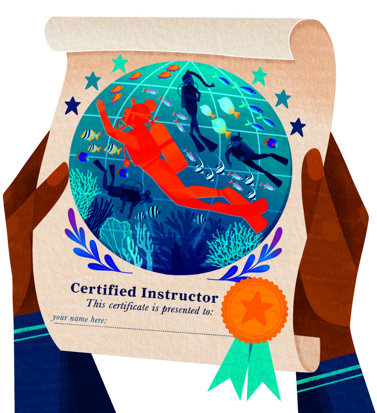 I dived my way from open-water to divemaster in six months. It took me another year to raise the funds and meet the criteria to become an instructor. After I landed my first job teaching diving in Indonesia, I never looked back. I grew as a diver by teaching and continuing to learn.