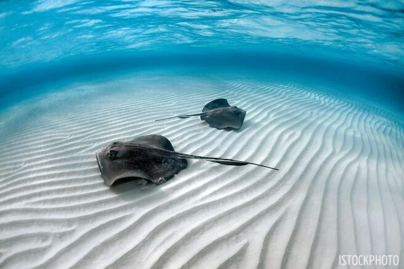 iStockStingrays can injure divers with a serrated barb at the end of their tail that has two venomous glands at its base.