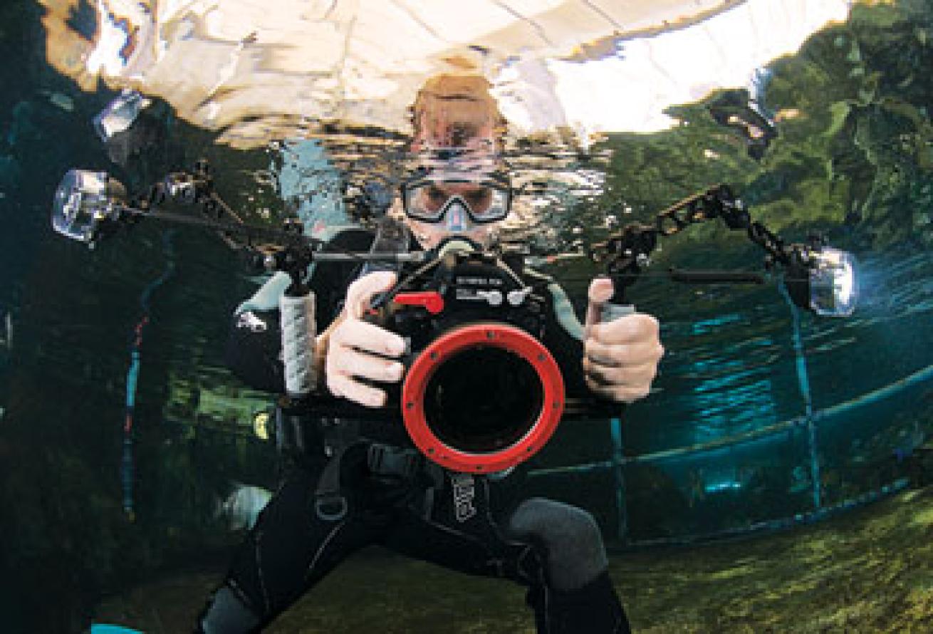 The Olympus PEN It's Mine, Guys! OK, now don't tell the guys at Olympus, but every time they send me a camera to test, my kids, family members, passersby, staff, just about anyone in my life who sees me using the camera takes it from me. Dang them. I have, in my relative possession, the SW1030, which my kids use to exercise their creative water visions; I have an SP-590UZ, which is like a little miracle of easy-to-use-ness to me. But, alas, my mom liked the way it worked. And now she's gallivanting around with it shooting the grandkids in every scene mode Olympus has ever devised. And, right after I tested the E-520, it became the favored camera of the staff, who have taken that system all around the globe. So now I'm not saying a word about the newest Olympus on the block, the PEN E-PL1. It's mine to road test, dadgummit! I've used this system, with the Olympus housing and strobes, a couple of times, and am really beginning to enjoy the one-two punch of being able to switch between images (with interchangeable lenses, no less) and 720 HD video. It's making me into a multimedia man. The thing that most impresses me about it is that it's as easy to use as a point-and-shoot (I just took it out of the box, charged the batteries, put it in the housing and went diving I'll read that pesky instruction manual later), with some of the sophisticated options of an SLR, such as interchangeable lenses. But the bottom line for cameras, for me, is always image quality, which has been exceptional enough that this camera now sits on the seat of my car and in my bag as the go-to gear for everyday use. Just, please, don't tell my family, friends or staff.