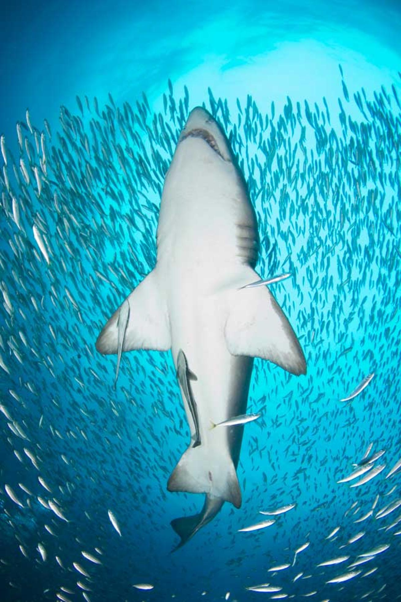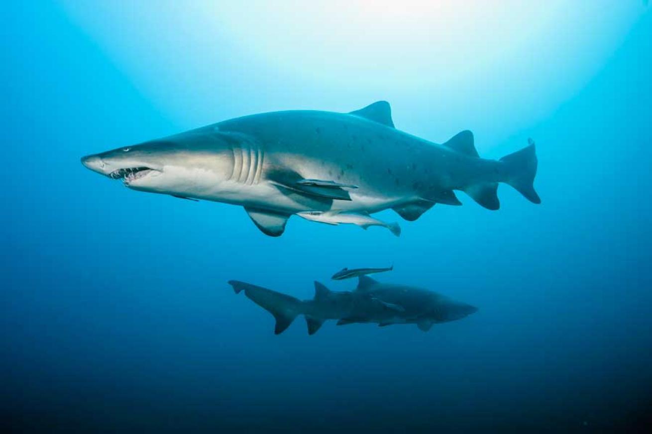 Michael Patrick O'NeillSand tiger sharks patrol a North Carolina wreck near Beaufort, NC.