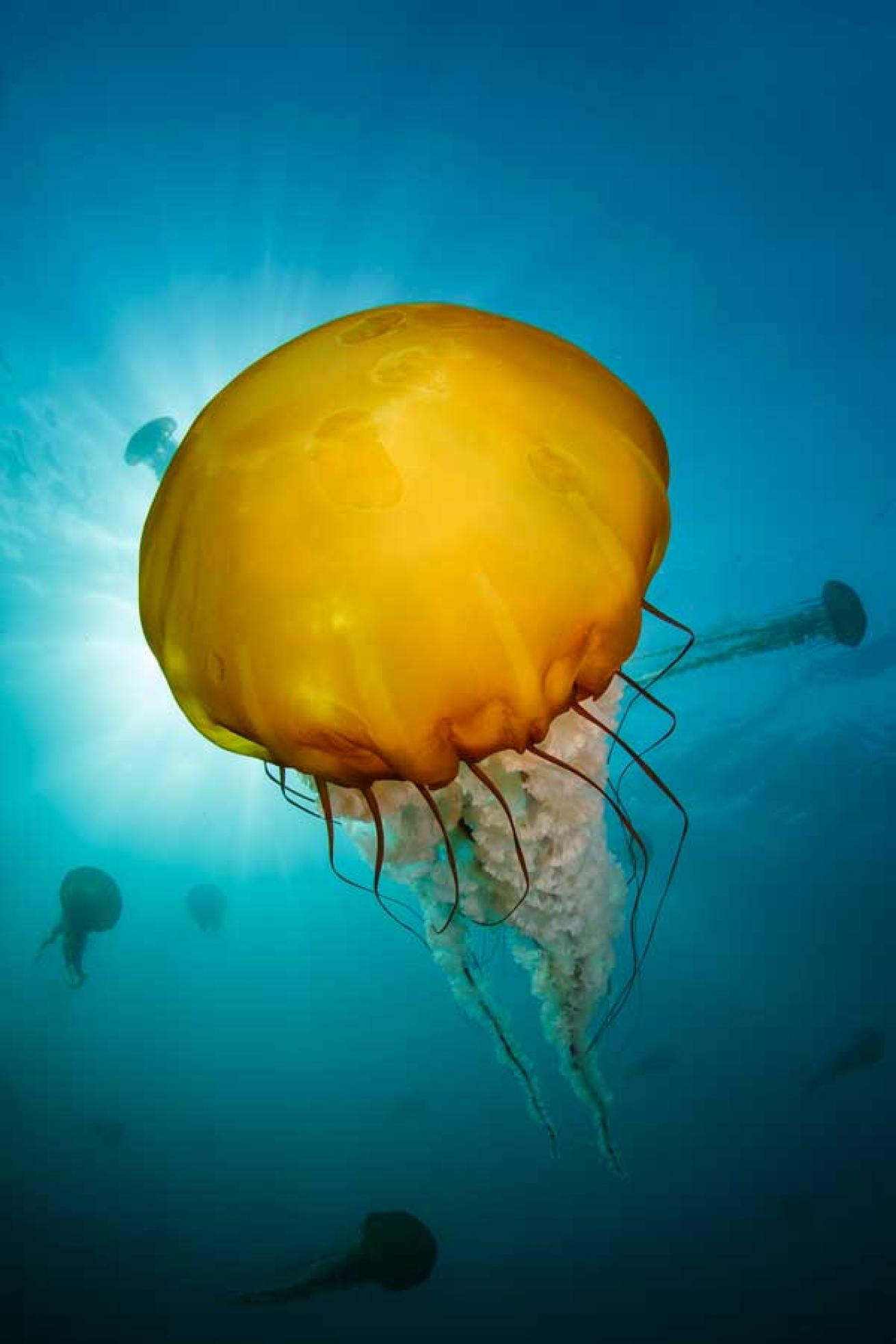 Allison VitskyBlack sea nettles float off the coast of Southern California.