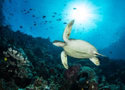 Most underwater cameras can create sunbursts when used with a strobe or flash and some manual settings. Here are three tips to start creating sunbursts in your underwater photos.