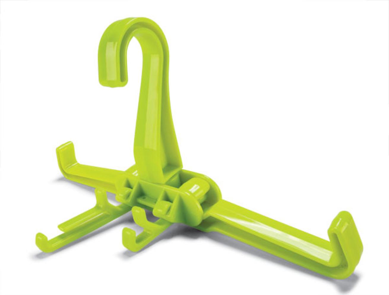 The BC hanger has curved arms (pictured). The wetsuit hanger’s wide contoured arms follow a shoulder shape. Both have 360-degree rotating hooks so they can be used virtually anywhere.