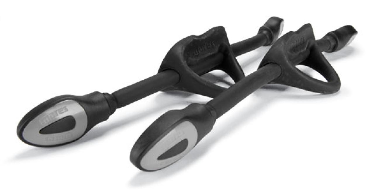 Made from a stretchy, non-degradable material, Bungee Straps are designed for Mares’ open-heel fins, but a quick survey showed they will work on a variety of other brands. They come in three sizes and include spacers for drysuit diving.