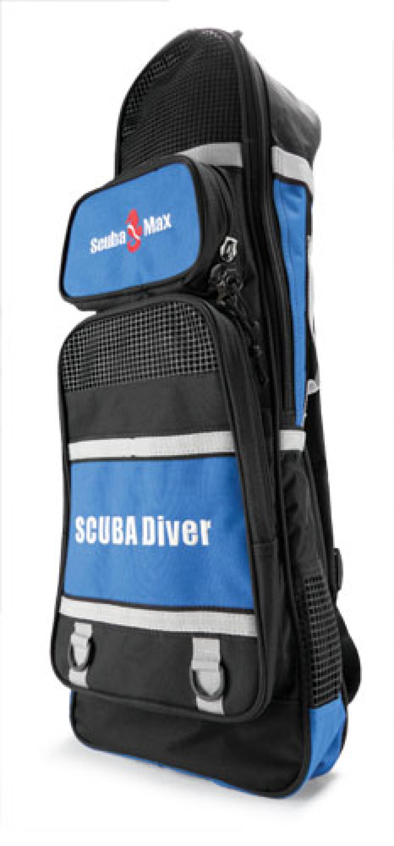 For keeping fins organized on the dive boat or when hiking around a tropical island, this useful tool can handle a pair of long open-heel fins in the main compartment, leaving the two external pouches for a mask and other necessities.
