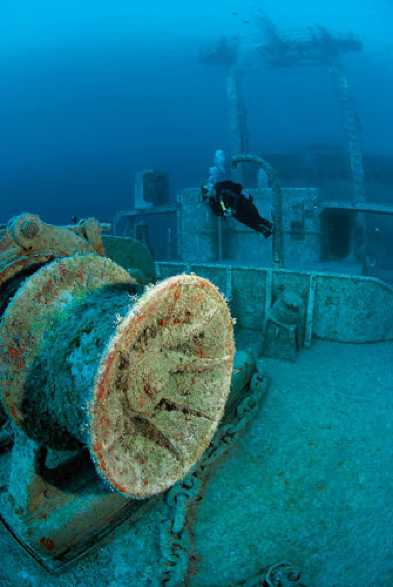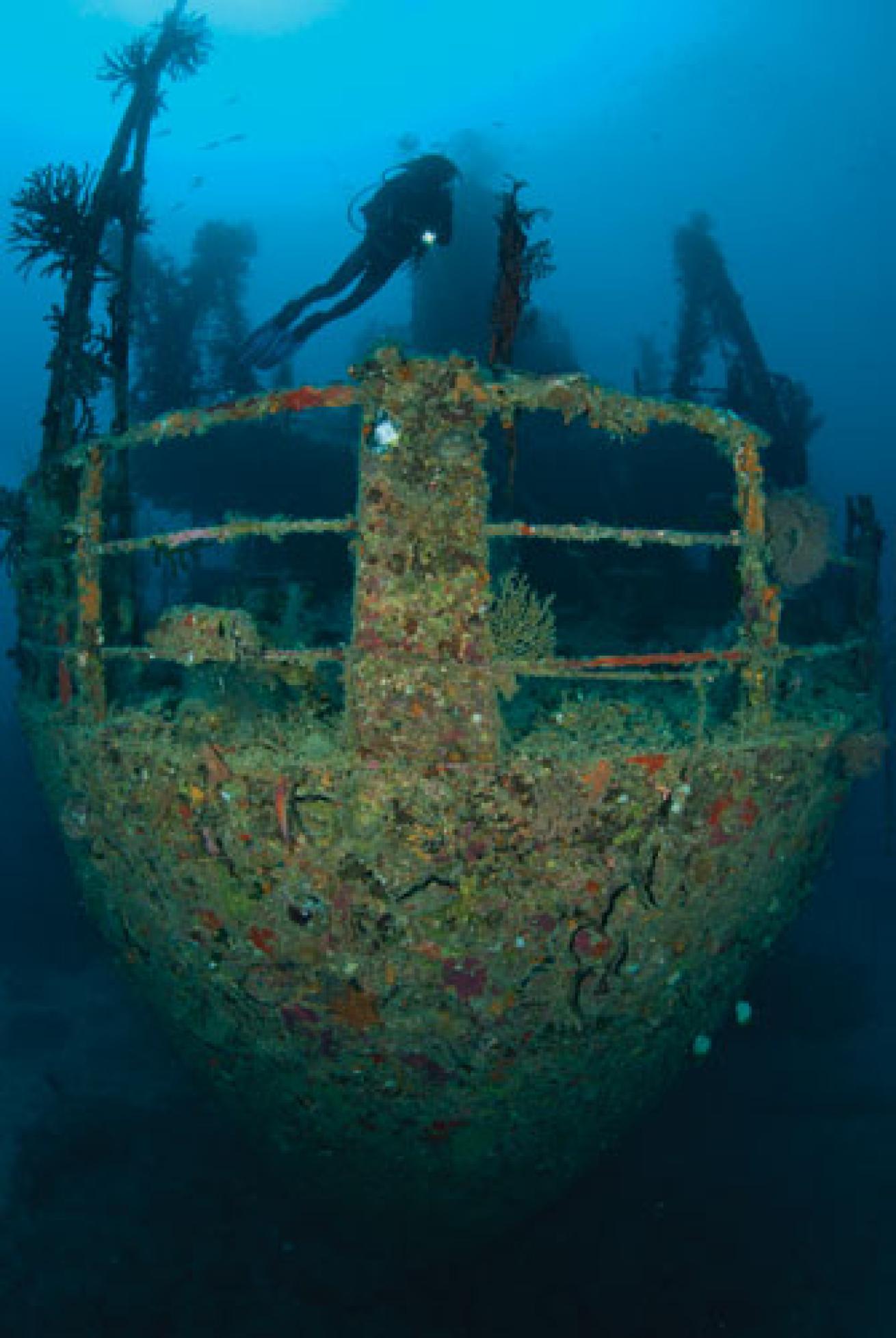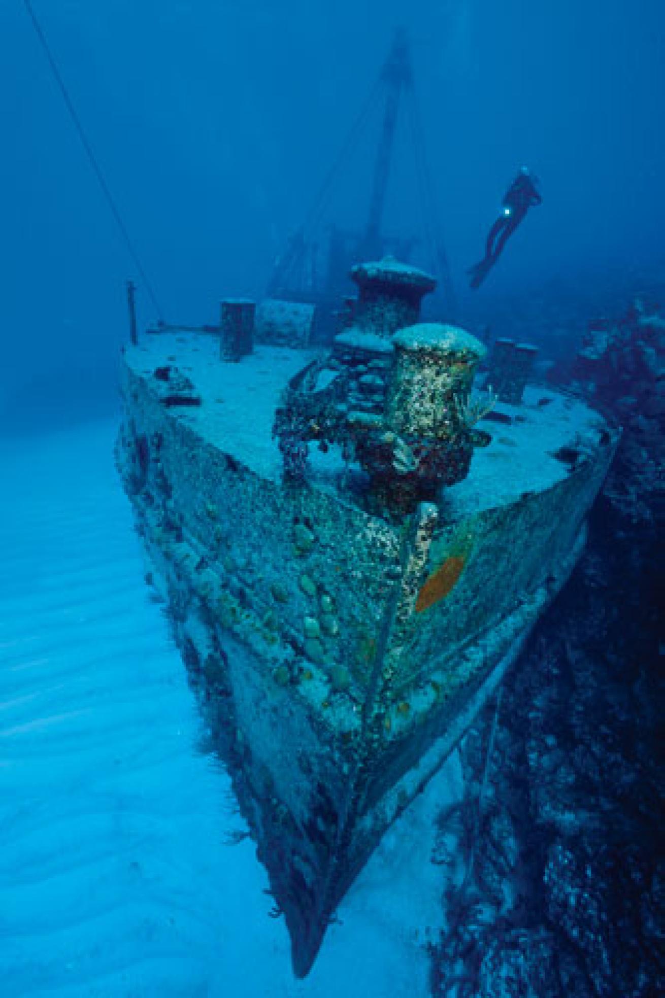 Hermes, Bermuda With literally hundreds of shipwrecks scattered across its fringing reefs, Bermuda is heaven for wreck divers, and hell for the innumerable ships that have foundered and broken apart on its treacherous shoals. But the Hermes — a former buoy tender — stands because, as an intentionally sunk artificial reef, it went down in a protected area and remains largely intact. Sunk in 1984 by the Bermuda Divers Association, the Hermes sits in 80 feet of water, and numerous open hatches offer access to the pilothouse, engine room and cargo holds.