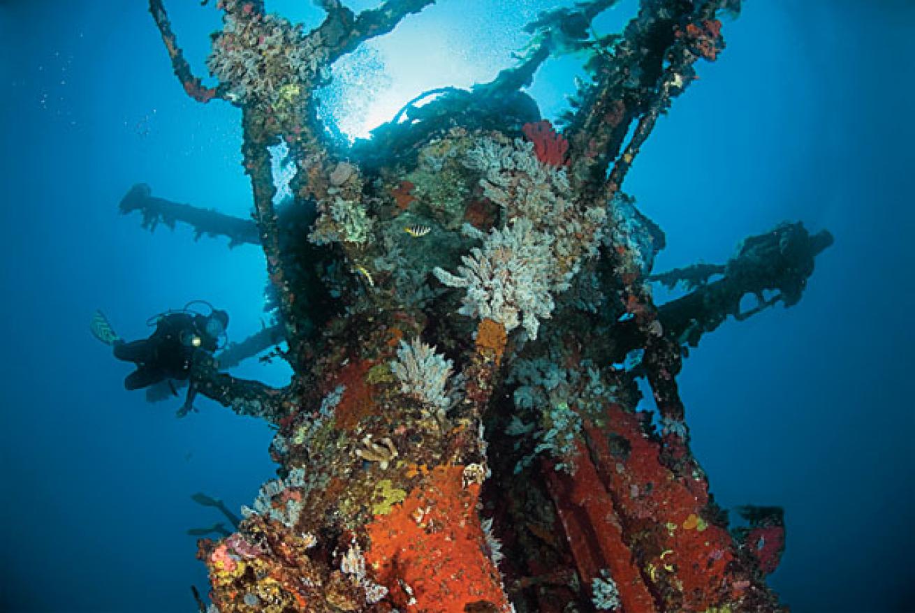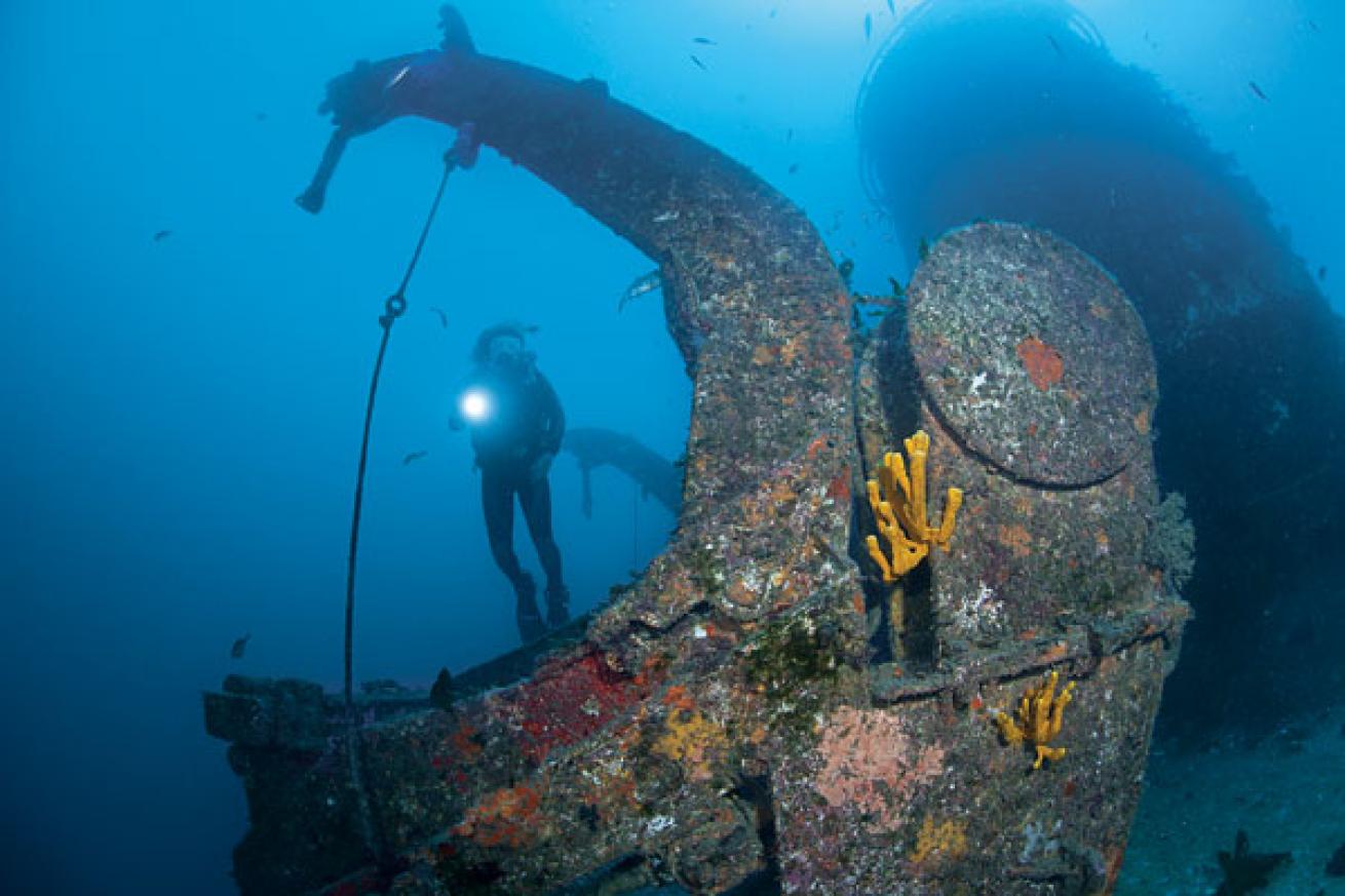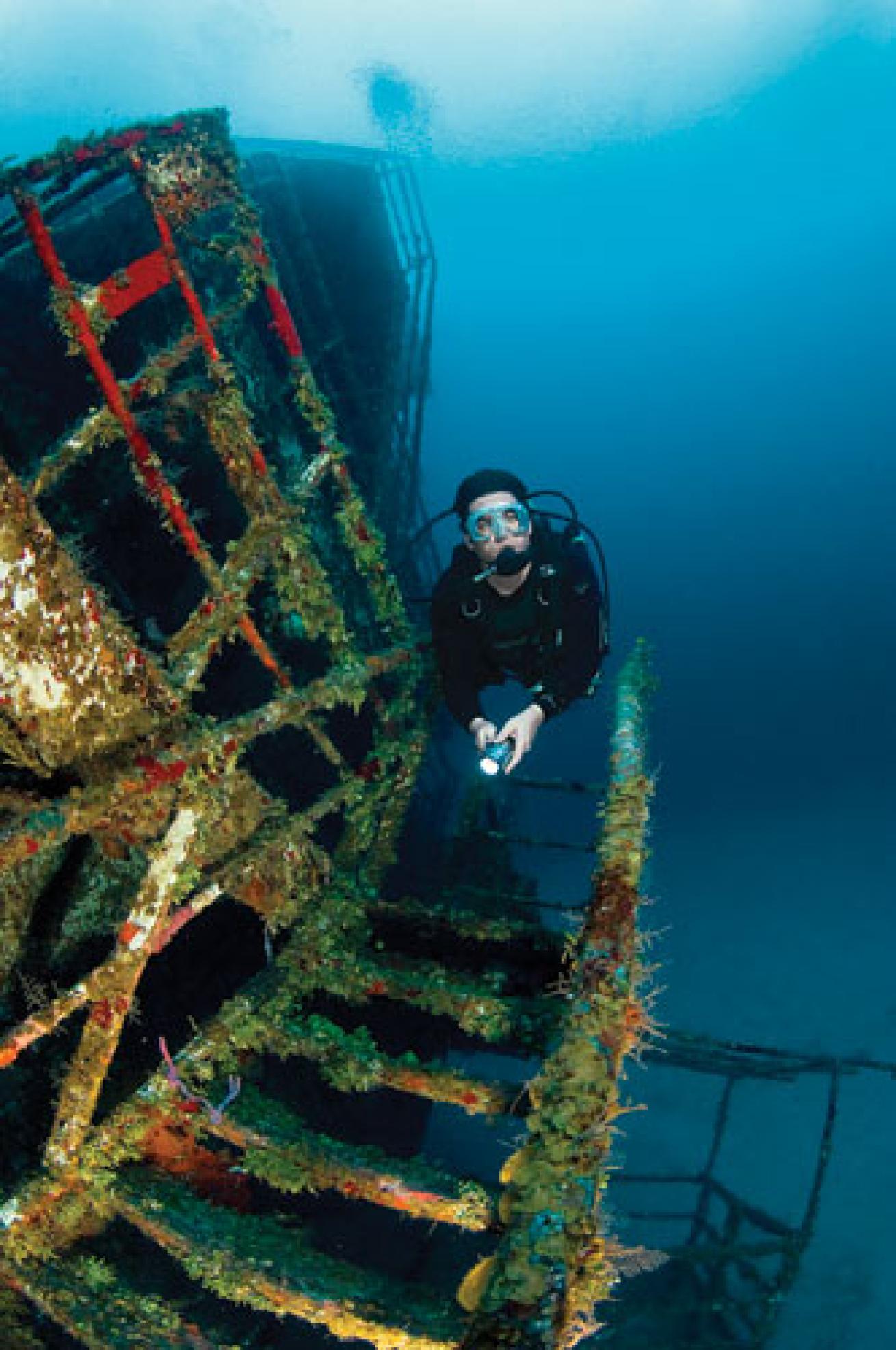 Hermes, Bermuda With literally hundreds of shipwrecks scattered across its fringing reefs, Bermuda is heaven for wreck divers, and hell for the innumerable ships that have foundered and broken apart on its treacherous shoals. But the Hermes — a former buoy tender — stands because, as an intentionally sunk artificial reef, it went down in a protected area and remains largely intact. Sunk in 1984 by the Bermuda Divers Association, the Hermes sits in 80 feet of water, and numerous open hatches offer access to the pilothouse, engine room and cargo holds.