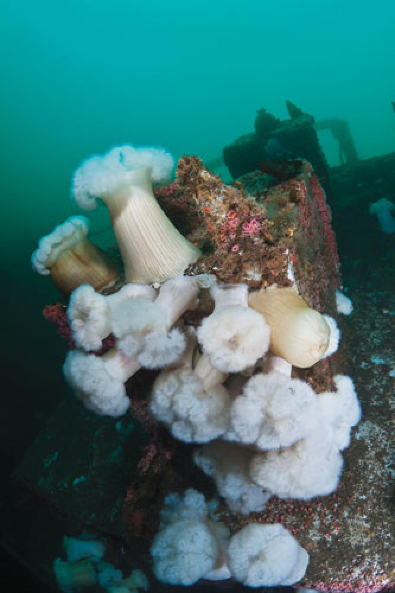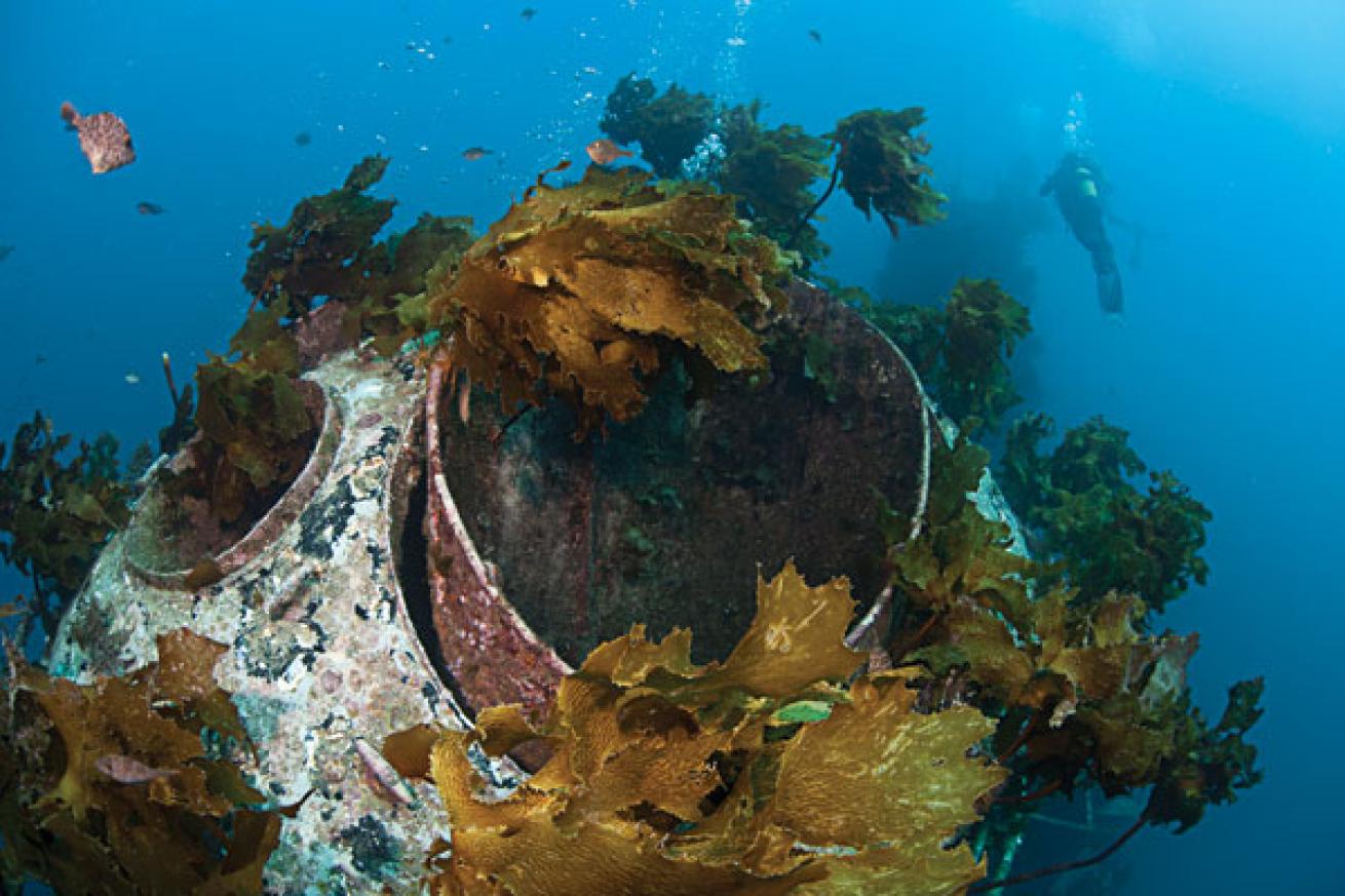 HMCS Yukon, San Diego The premier dive of Wreck Alley since its sinking in July 2000 by the San Diego Oceans Foundation, the Yukon didn’t go down without a fight, ending up on its side in about 100 feet of water. Advanced wreck divers planning to penetrate the ship must contend with lopsided passages and rooms that run vertically rather than horizontally. On the exterior of the wreck, recreational divers will find gun turrets near the bow and stern, and macro photographers can shoot a wide array of subjects, from blankets of stark-white metridium anemones to technicolor nudibranchs.