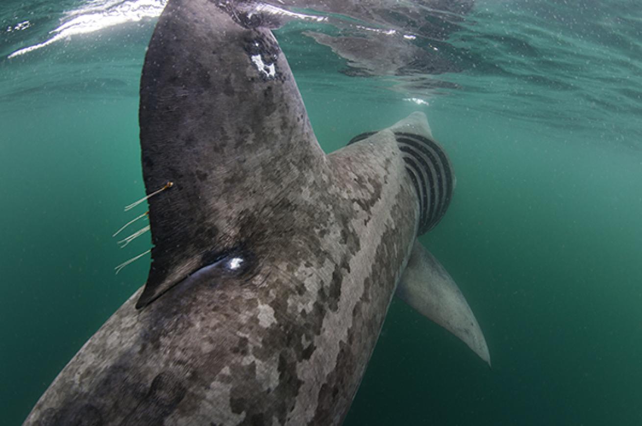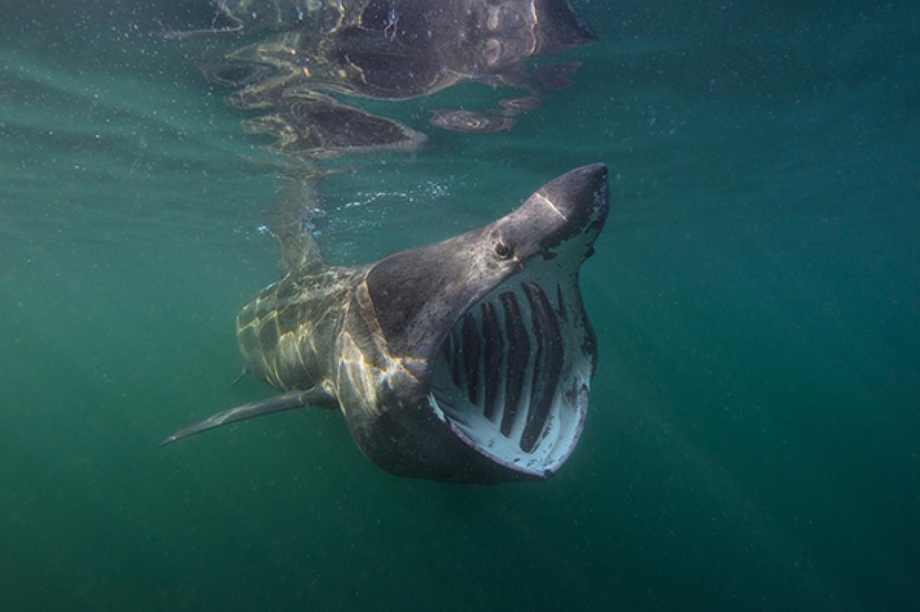 When a giant, 6-foot-tall dorsal fin cuts through the dark water directly in front of you, a human’s primal instinct takes over. Immediately your heart will start to race in a rush of adrenaline, no matter how firm your intellectual grasp of the fact that the basking shark is a filter feeder that consumes only the sea’s tiniest organisms, not a fierce predator.