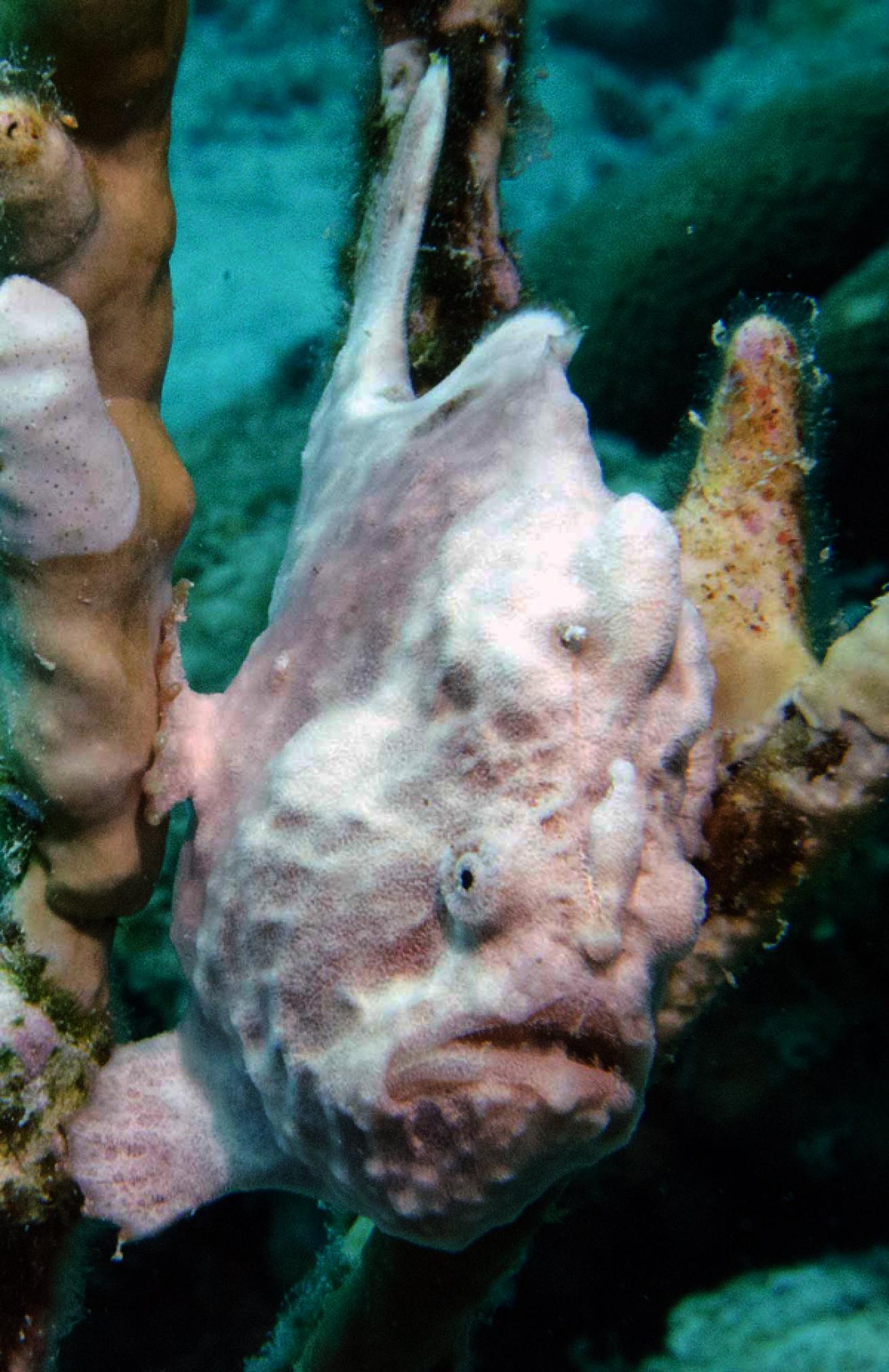 Here is an amazing frogfish disguise adapted to portray a coral head. Frogfish have a modified dorsal fin topped with a wriggling lure that resembles a shrimp or worm that is used to attract their prey. If the lure is lost or eaten, it is able to be regenerated.