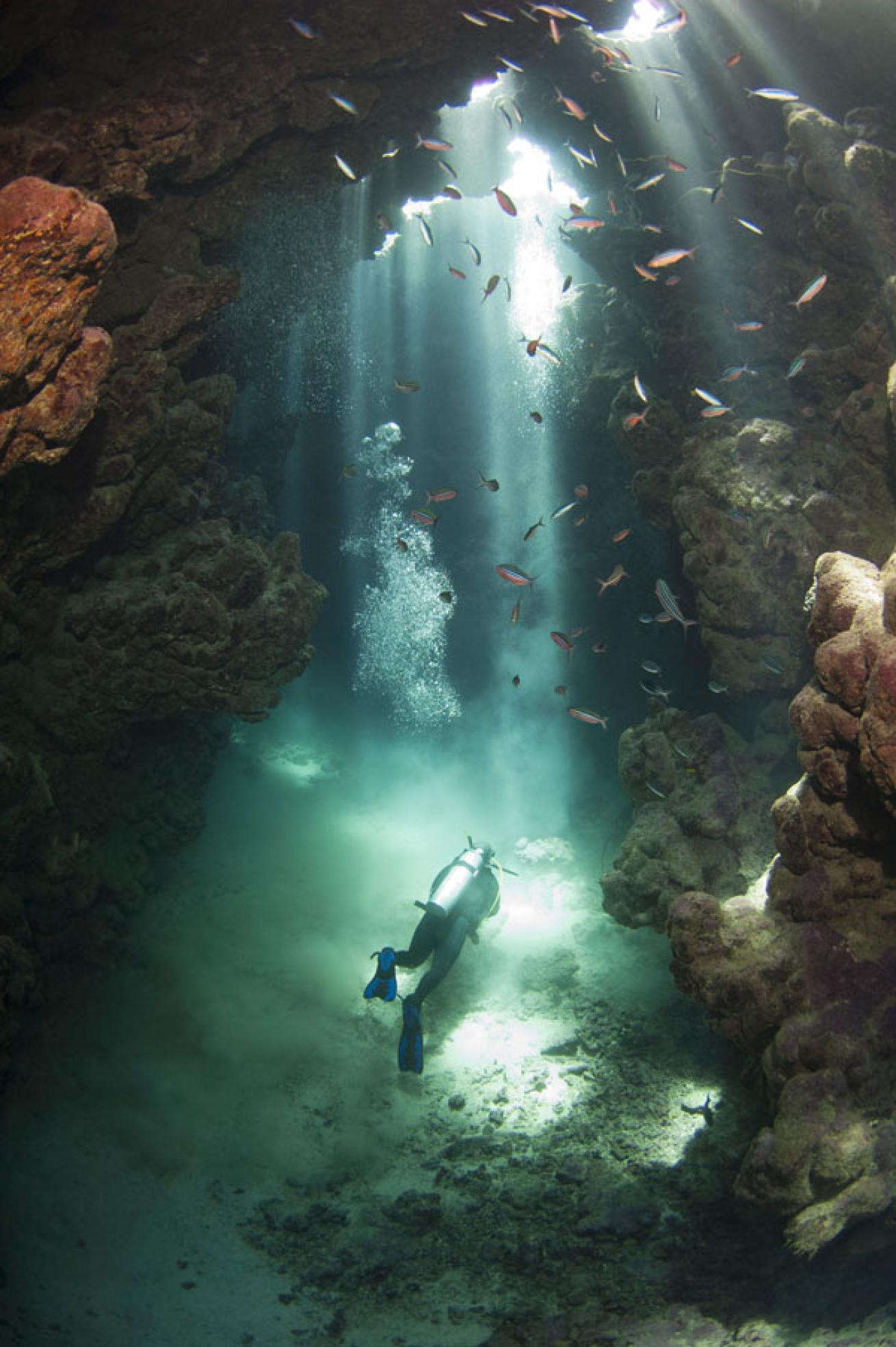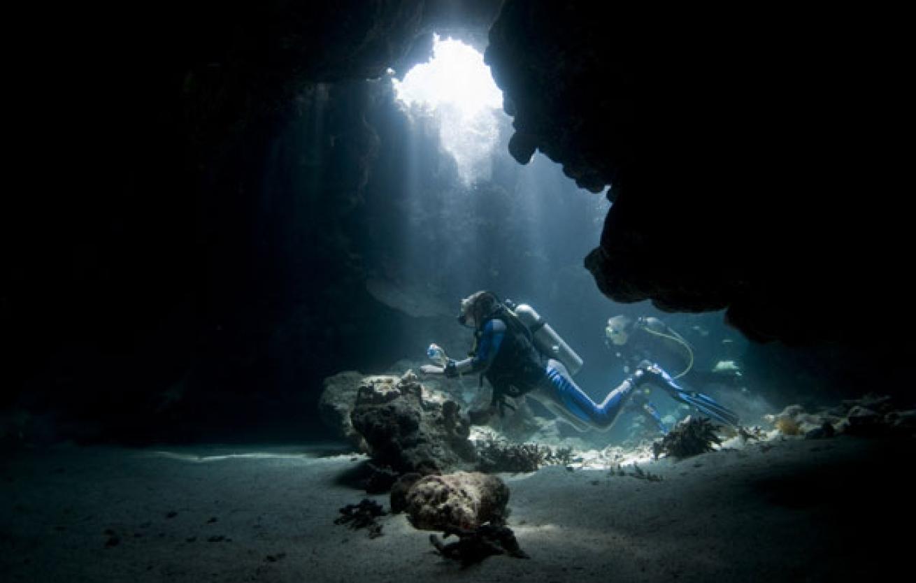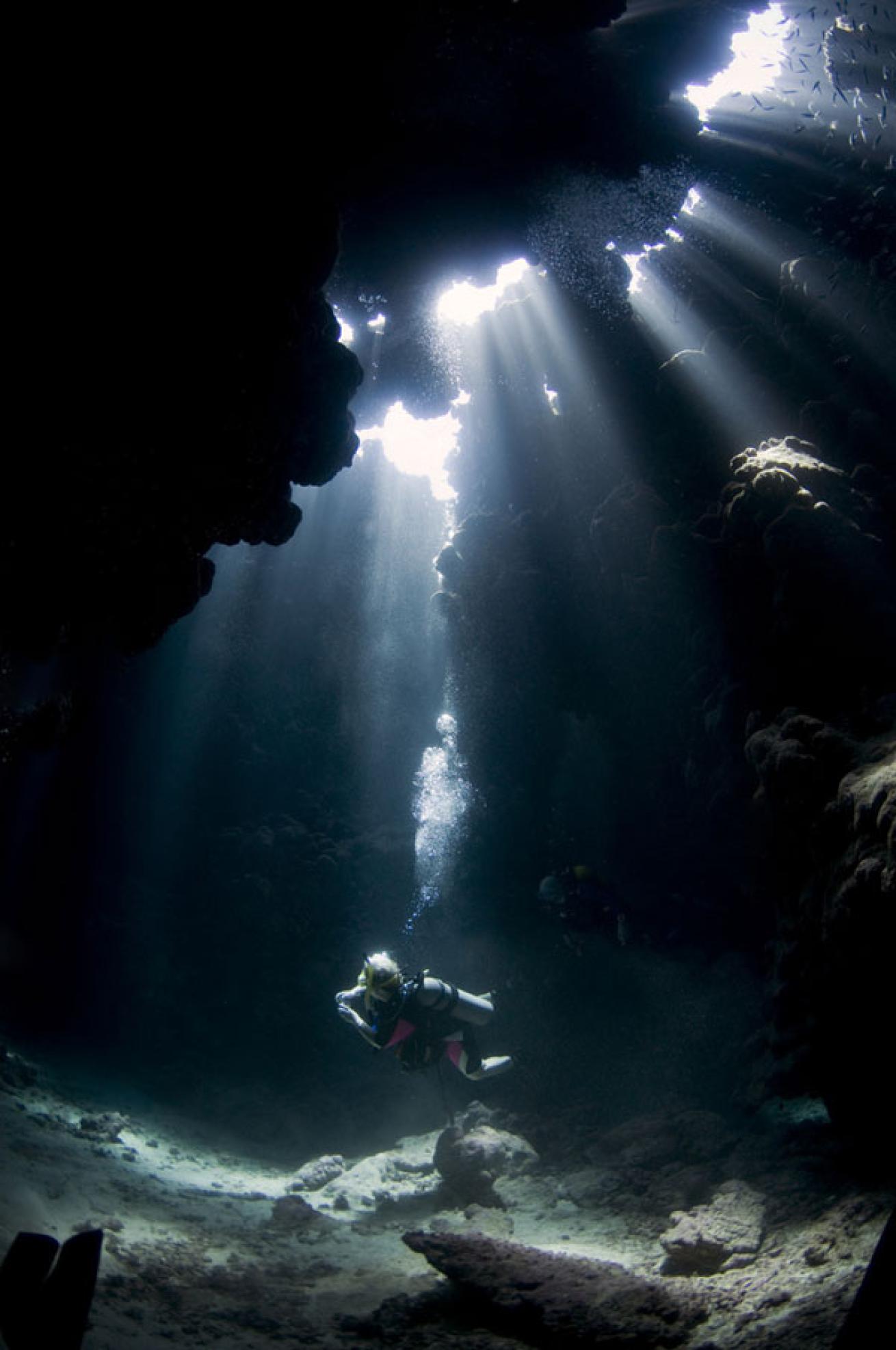 1) Stay in the light. Cavern divers must stay within sight of the entrance; leave the light zone, and you’re cave diving. Cavern divers should keep a distance of no more than 130 feet from the surface.