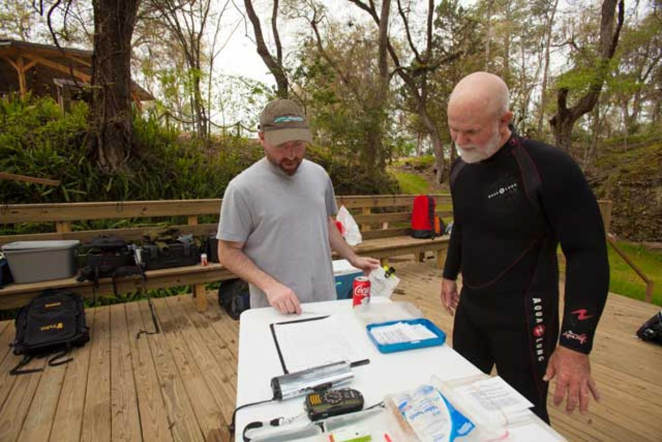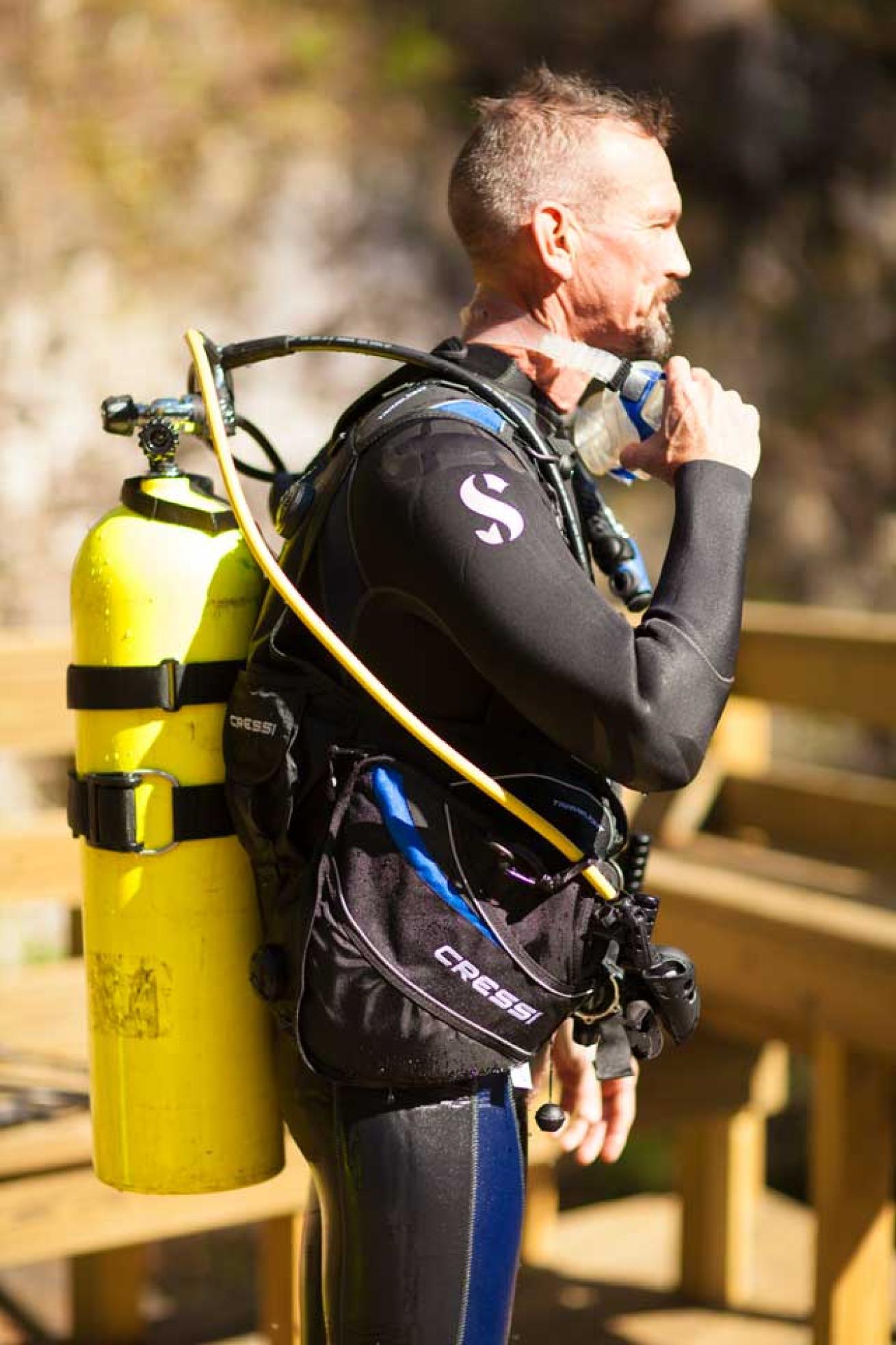 Jon WhittleFlorida's Blue Grotto cavern is a popular spot for dive training. Test-team divers shared the bowl with many other divers throughout the test days.