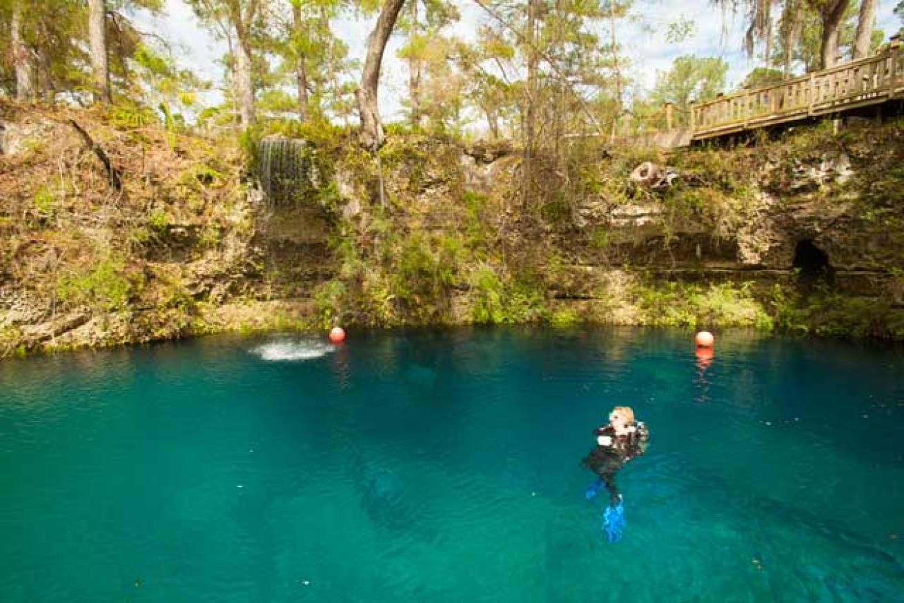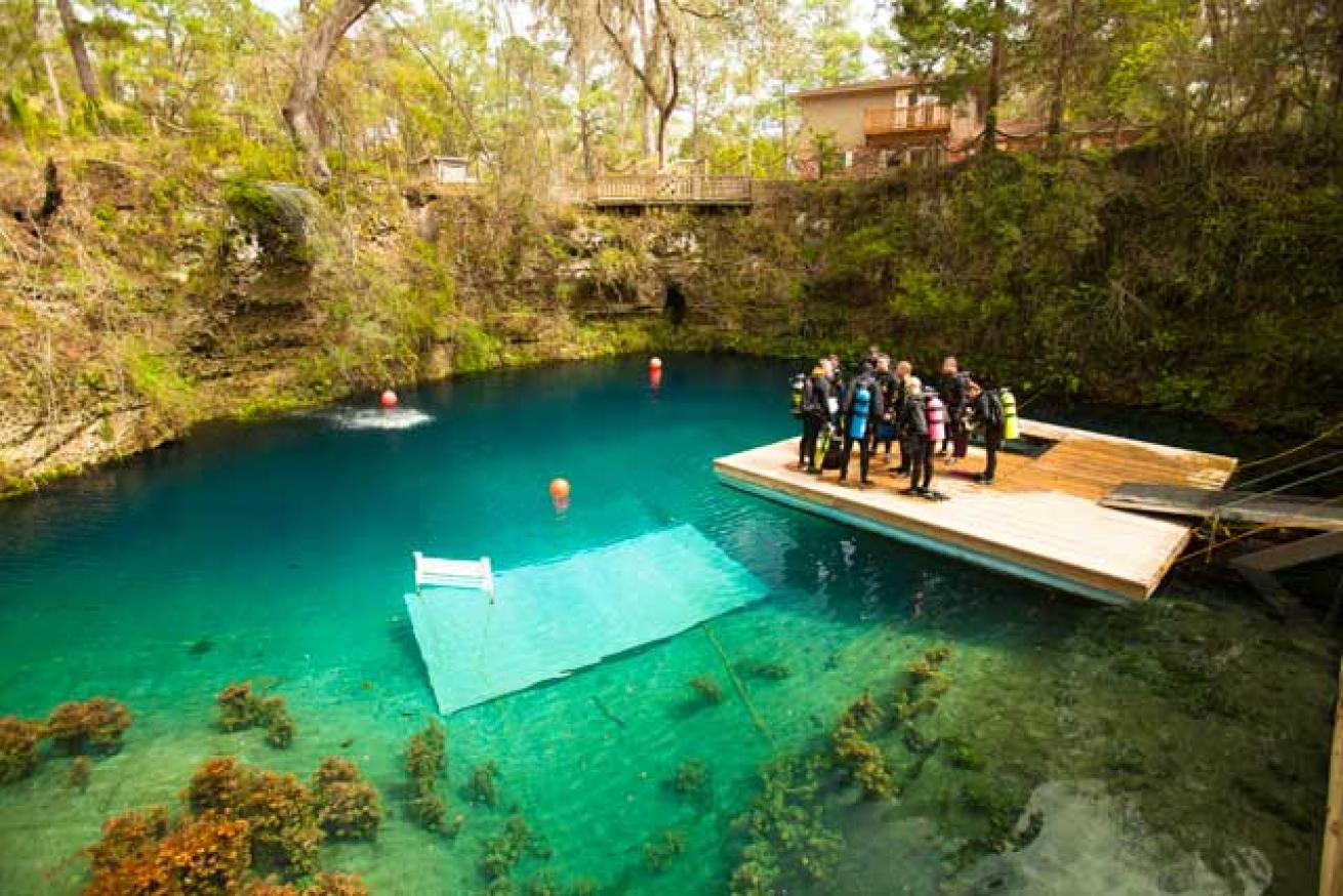 Jon WhittleFlorida's Blue Grotto has recently been substantially renovated by new ownership, including new multilevel platforms, dive-friendly picnic shelters, cabins, a swimming pool, and a new dive shop, coming soon.