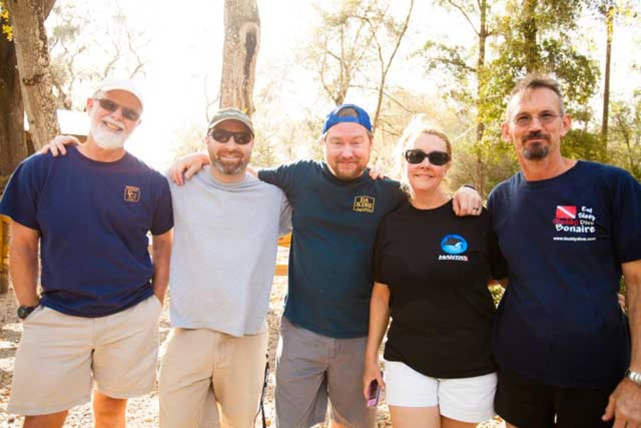 Jon WhittleA few of ScubaLab's team of test divers, including, from left: ScubaLab director emeritus John Brumm, test-team supervisor Alex Bean, test-team diver Eric Michael, Scuba Diving magazine deputy editor Mary Frances Emmons and ScubaLab director Roger Roy.