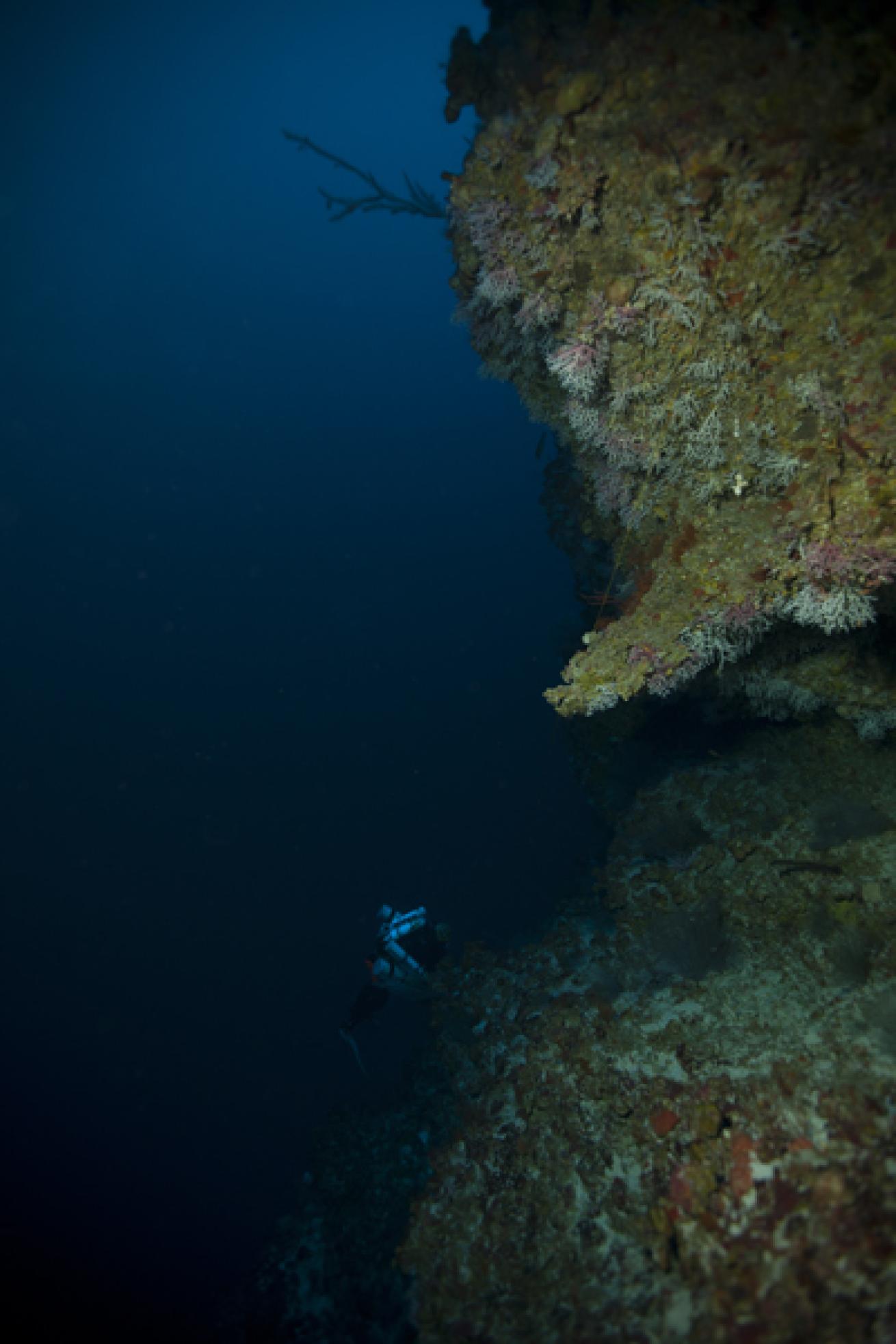 Jill HeinerthDeeper dives in Bermuda are typically conducted on the sheer walls around the margin of Bermuda Bank.